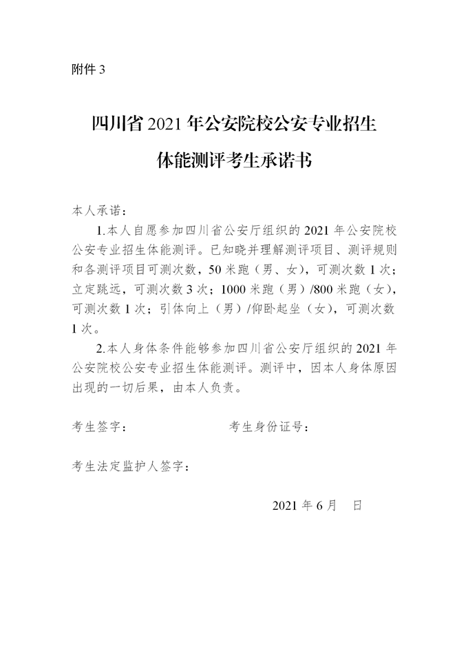 3.四川省2021年公安院校公安专业招生体能测评考生承诺书【下载】