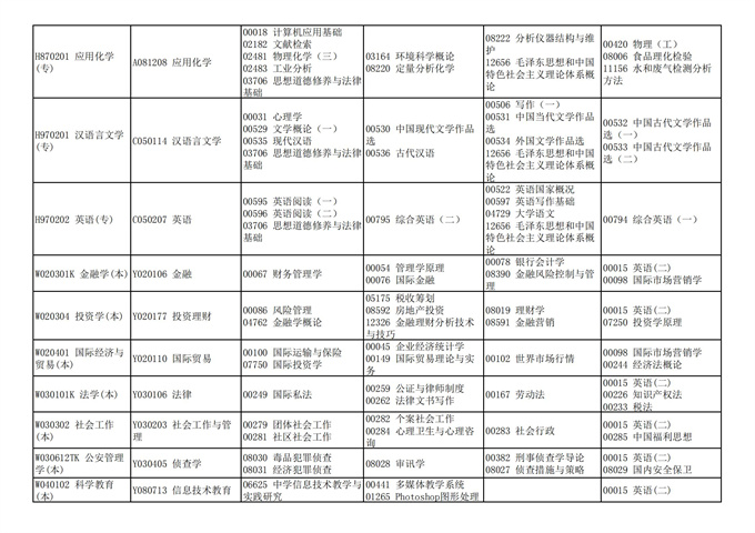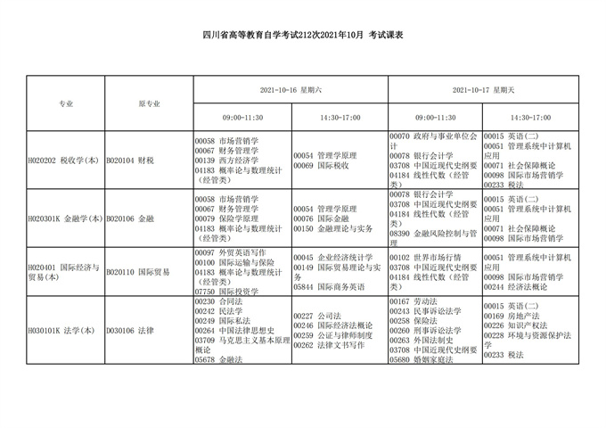 四川省高等教育自学考试212次2021年10月考试课表、课程简表(第1页考试课表,第2页课程简表)