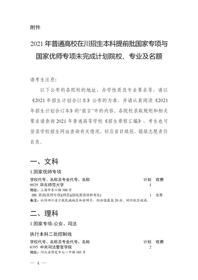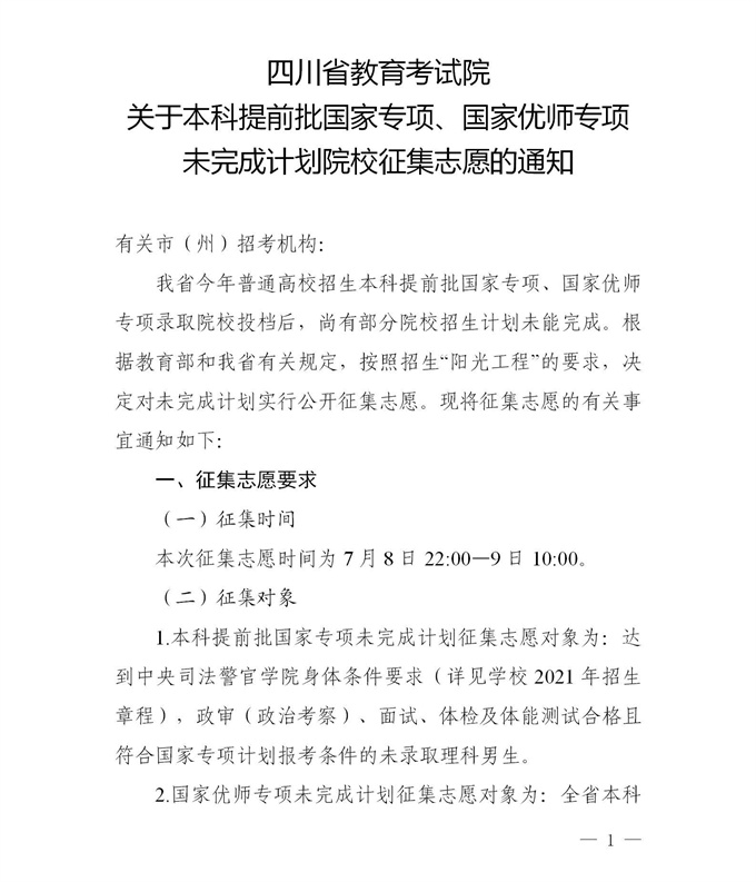 关于本科提前批国家专项、国家优师专项未完成计划院校征集志愿的通知
