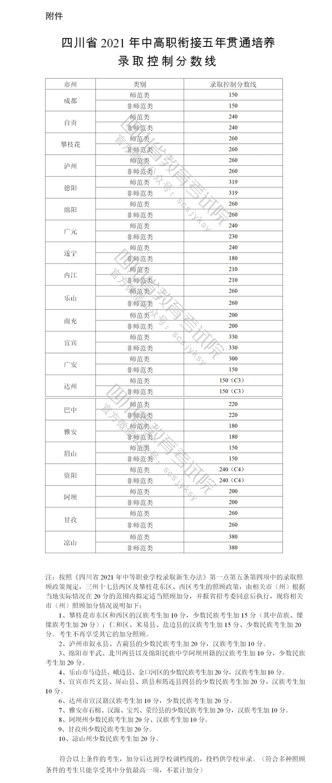 附件:四川省2021年中高职衔接五年贯通培养录取控制分数线