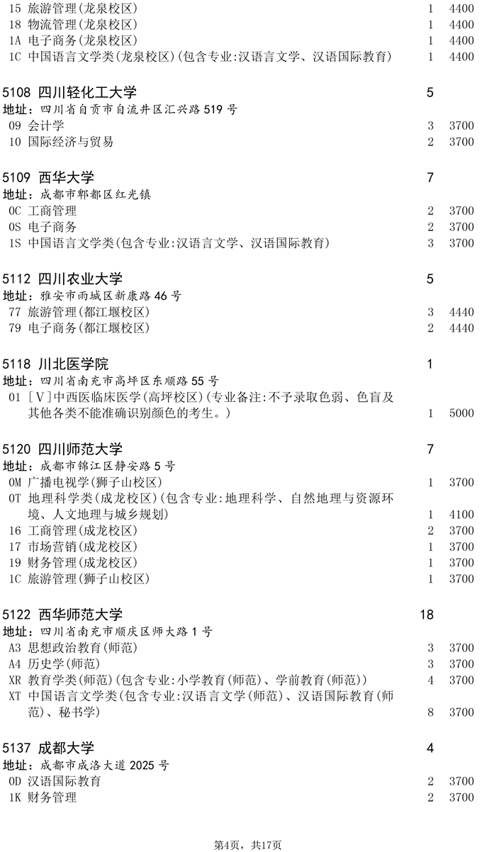 关于下发2025年普通高校在川招生计划更正及调整的通知