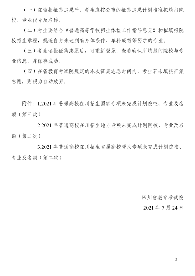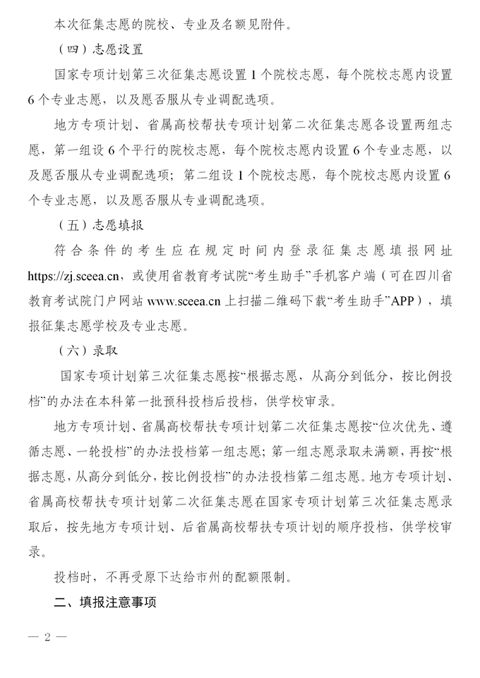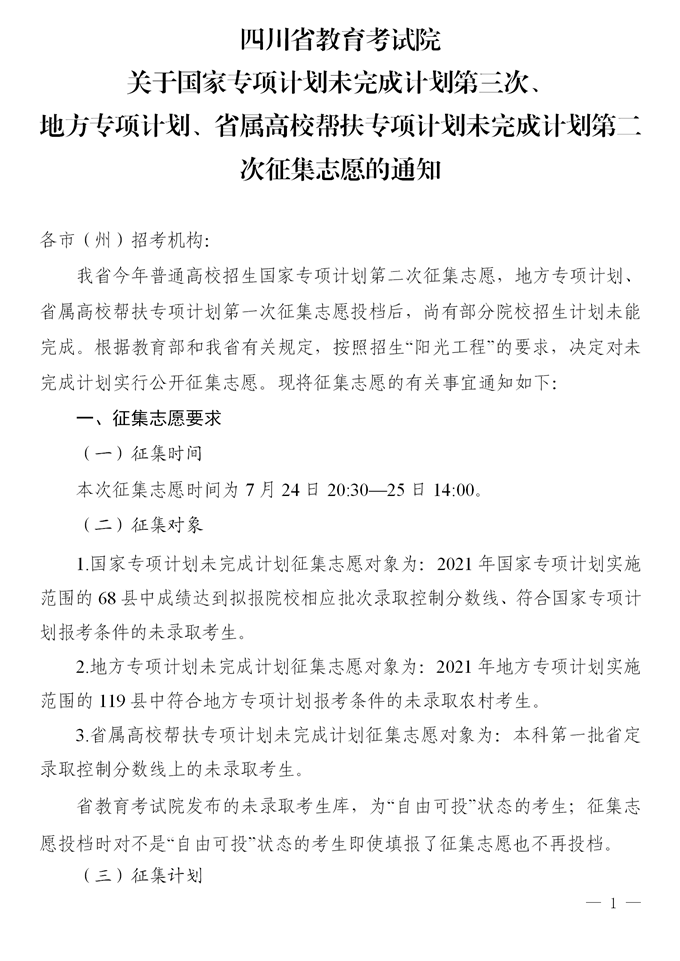 关于国家专项计划未完成计划第三次、地方专项计划、省属高校帮扶专项计划未完成计划第二次征集志愿的通知