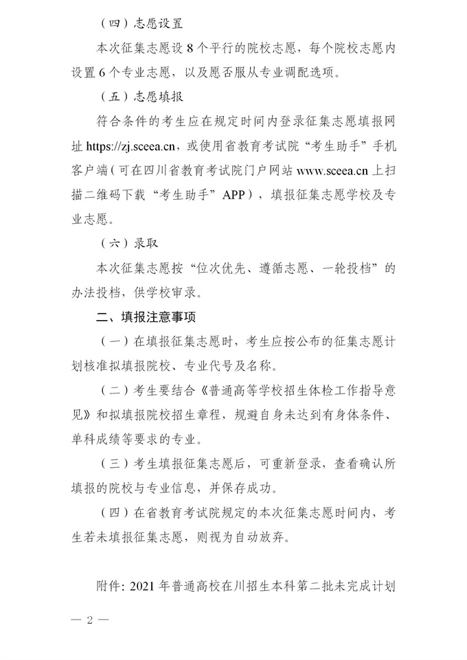 关于本科第二批未完成计划院校 第二次征集志愿的通知