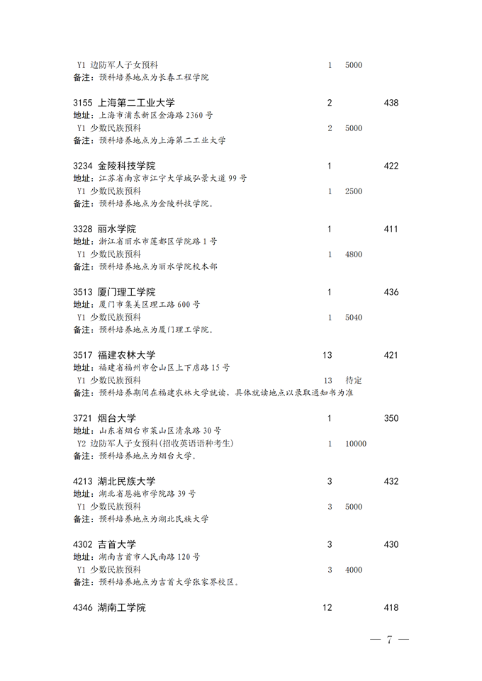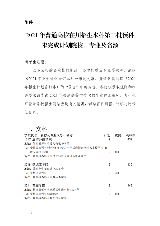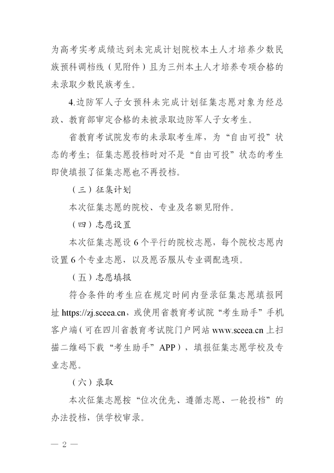 关于本科第二批预科未完成计划院校征集志愿的通知