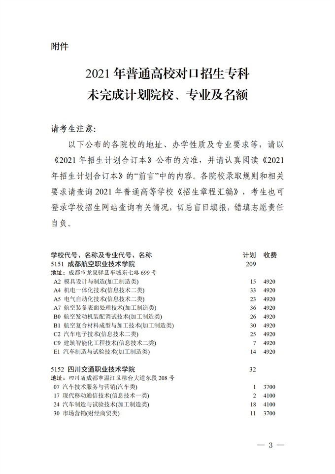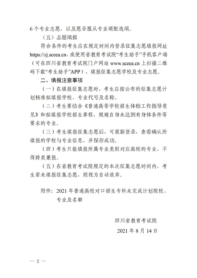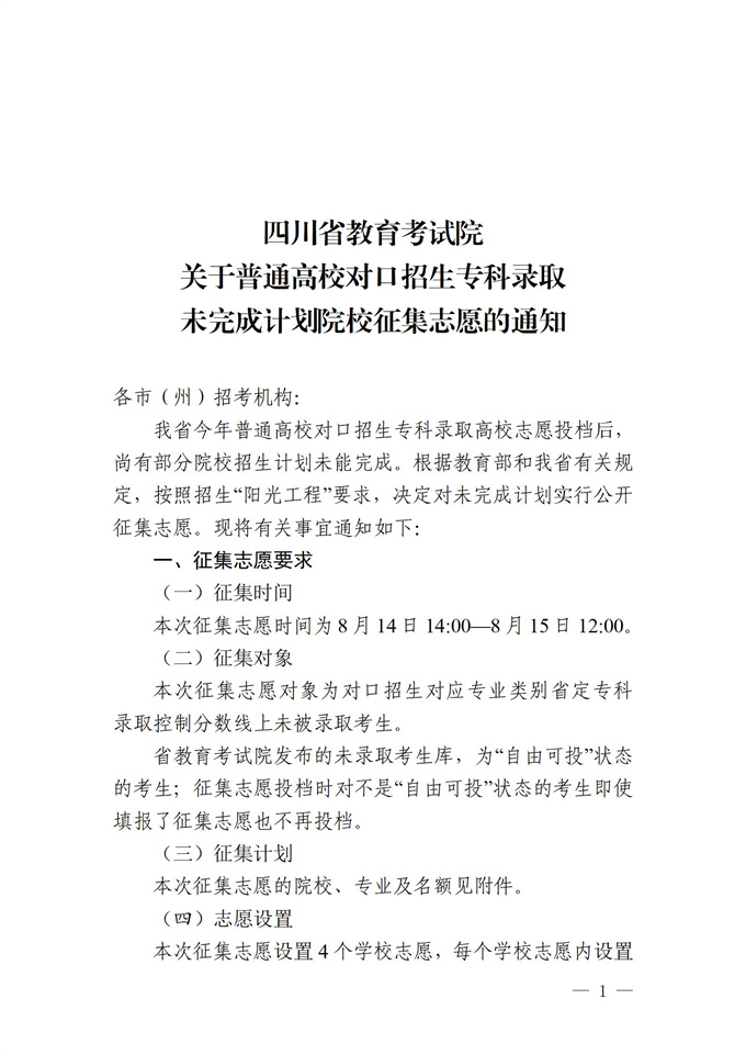 关于普通高校对口招生专科录取未完成计划院校征集志愿的通知