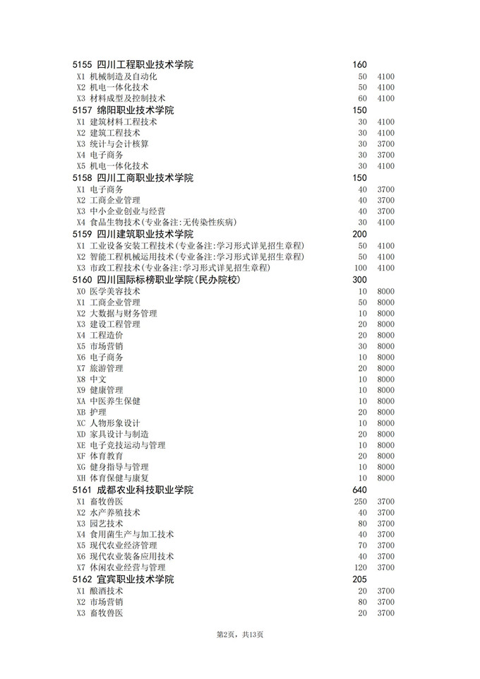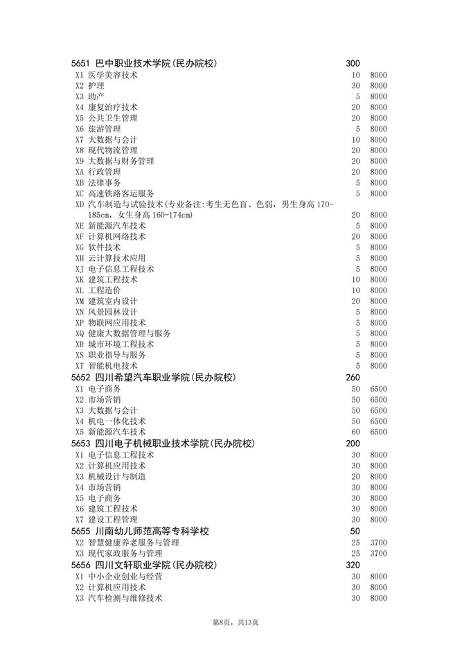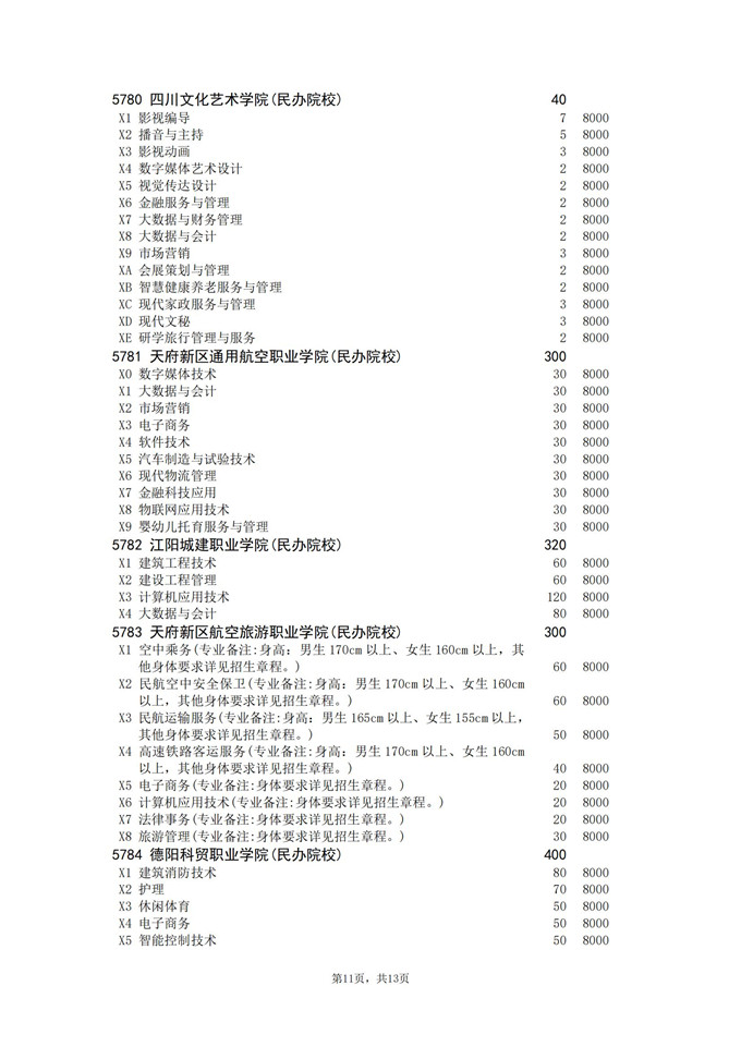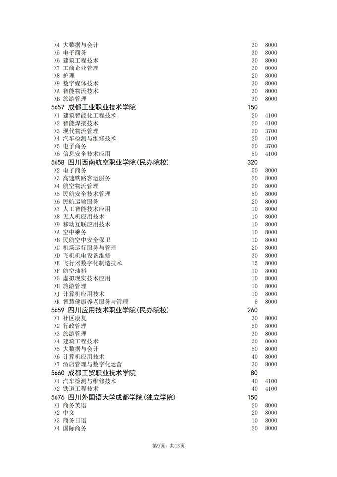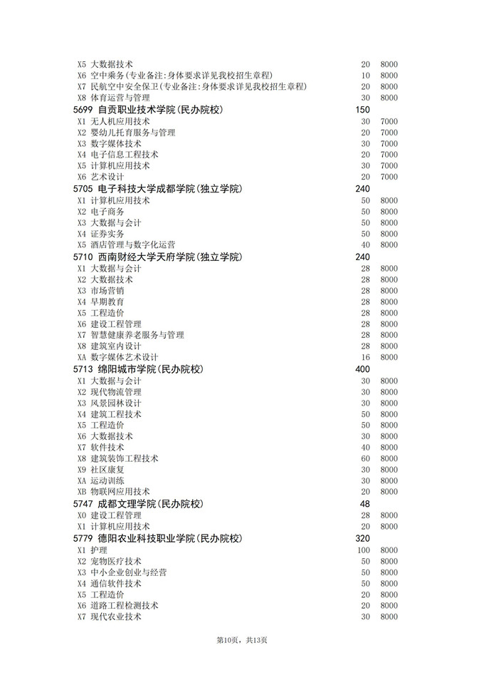四川省2025年普通高校专升本招生专业及计划