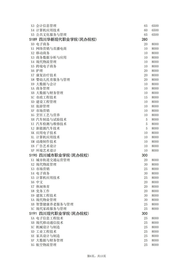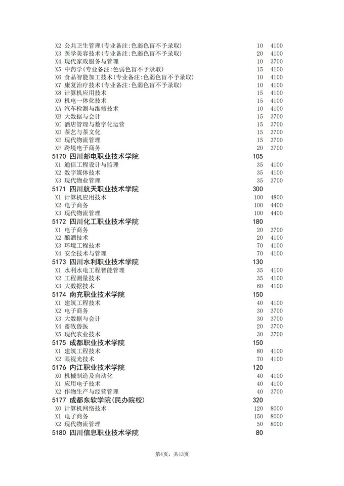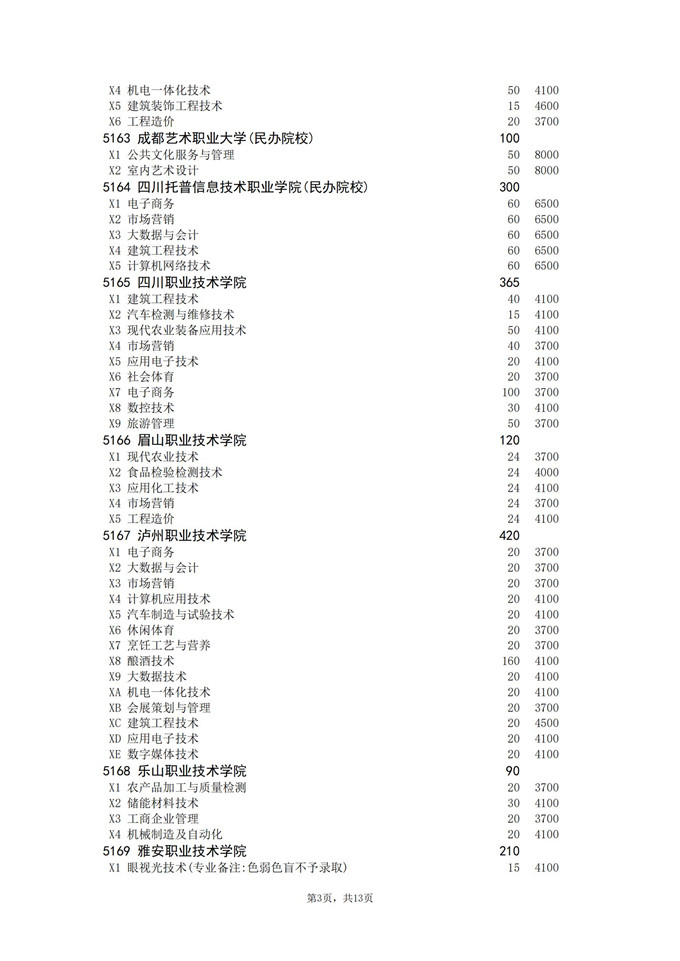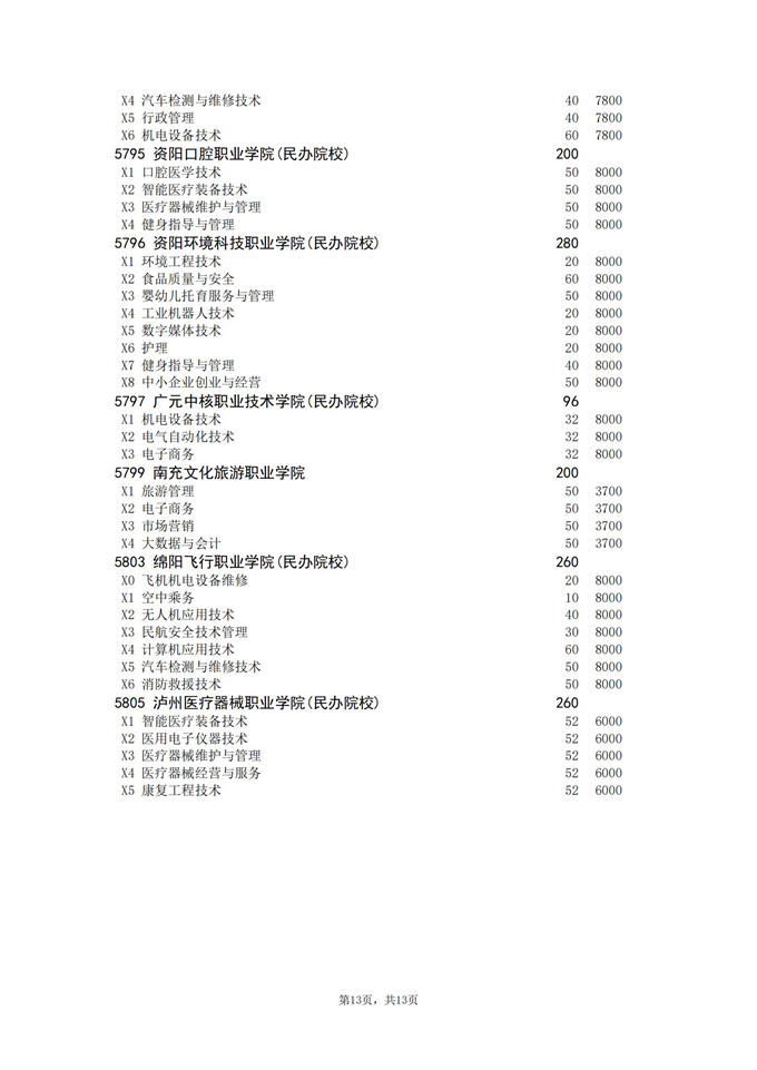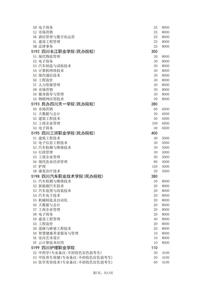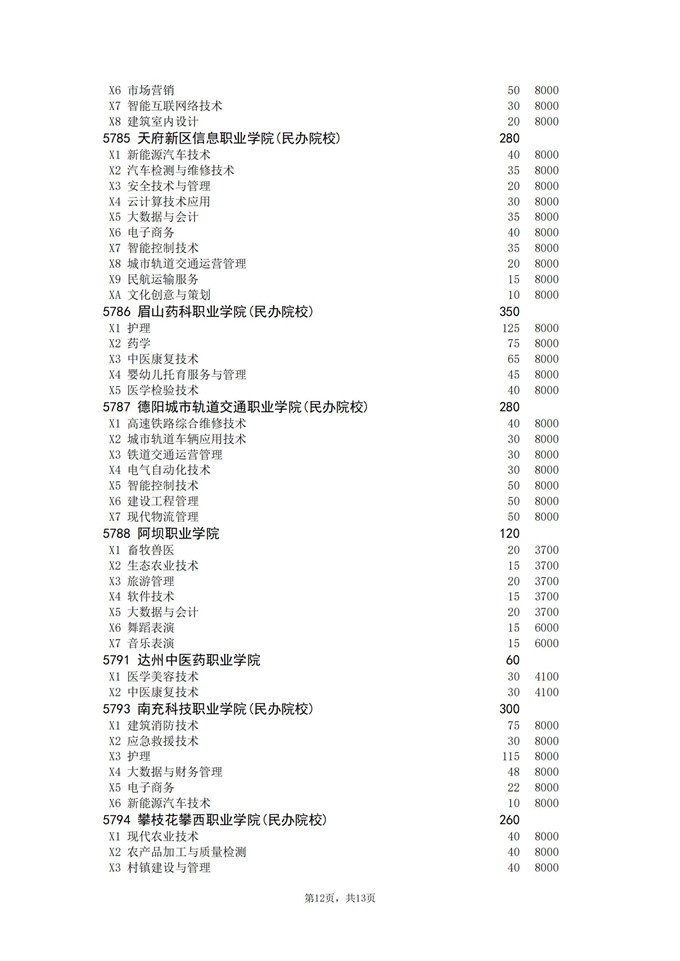 四川省2025年普通高校专升本招生专业及计划