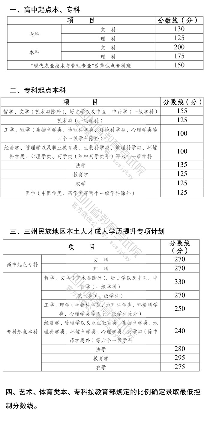 关于印发《四川省2021年成人高校招生录取最低控制分数线》的通知