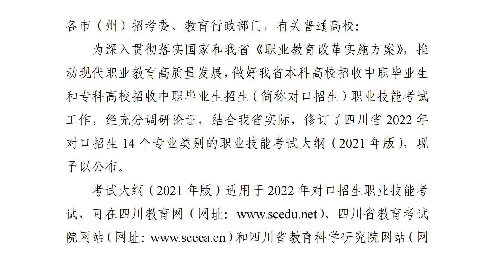 关于公布四川省2022年普通高校对口招生职业技能考试大纲的通知