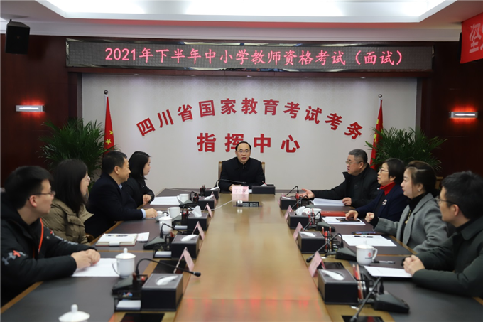 省教育厅及省教育考试院高度重视本次考试组考工作。考试期间,省教育考试院主要负责人及省教育厅教师工作处负责同志在省国家教育考试考务指挥中心坐镇指挥,院领导率队赴资阳环境科技职业学院考点进行实地巡考。为督促本次考试新增考点平稳顺利做好面试工作,省教育考试院派出巡考工作组前往考点实地巡查监督。开考前,我省还专门组织召开相关招考机构及考点考务会,对考试安全保密、面试考官培训、后勤保障、技术支持等工作做了详尽部署。为做好考试安全保密工作,我省将面试考点对接省考务指挥中心,通过网上巡查系统查看全省面试考点实时情况,第一时间协调处理突发事件。各市州招考机构以及考点对试卷保管、运送、分发、回收等各环节落实人技联防、一岗多控,确保做好面试试题光盘和加密锁保密运送交接,保障考试数据按期备份和加密保护,确保考试绝对安全。