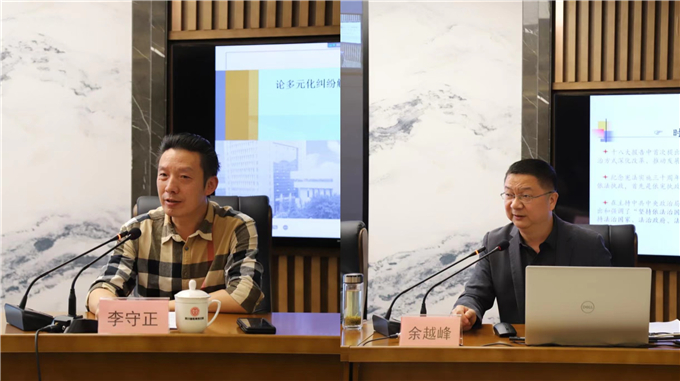 会议采取个人自学、集中学习、交流发言相结合的方式进行。4月14日,全体党员干部聆听了司法厅行政执法协调监督局局长余越峰同志主讲的《增强法治思维和法治方式开展教育新利体育在线登陆官网网址工作的意识》专题讲座和省高级人民法院二级调研员、二级高级法官李守正同志主讲的《多元化纠纷解决机制建设》专题讲座。4月15日,院党委委员及纪委办公室、普通高校招生处、自学考试处、信息技术处、省招生考试指导中心主要负责人围绕会议主题进行交流发言,党委书记、院长丁念友同志作了讲话。