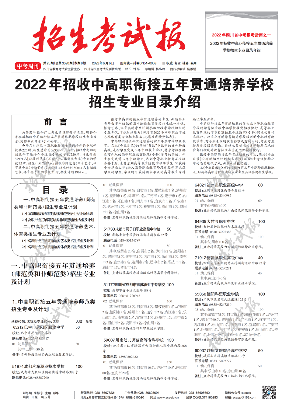 2022年招收中高职衔接五年贯通培养学校招生专业目录介绍
