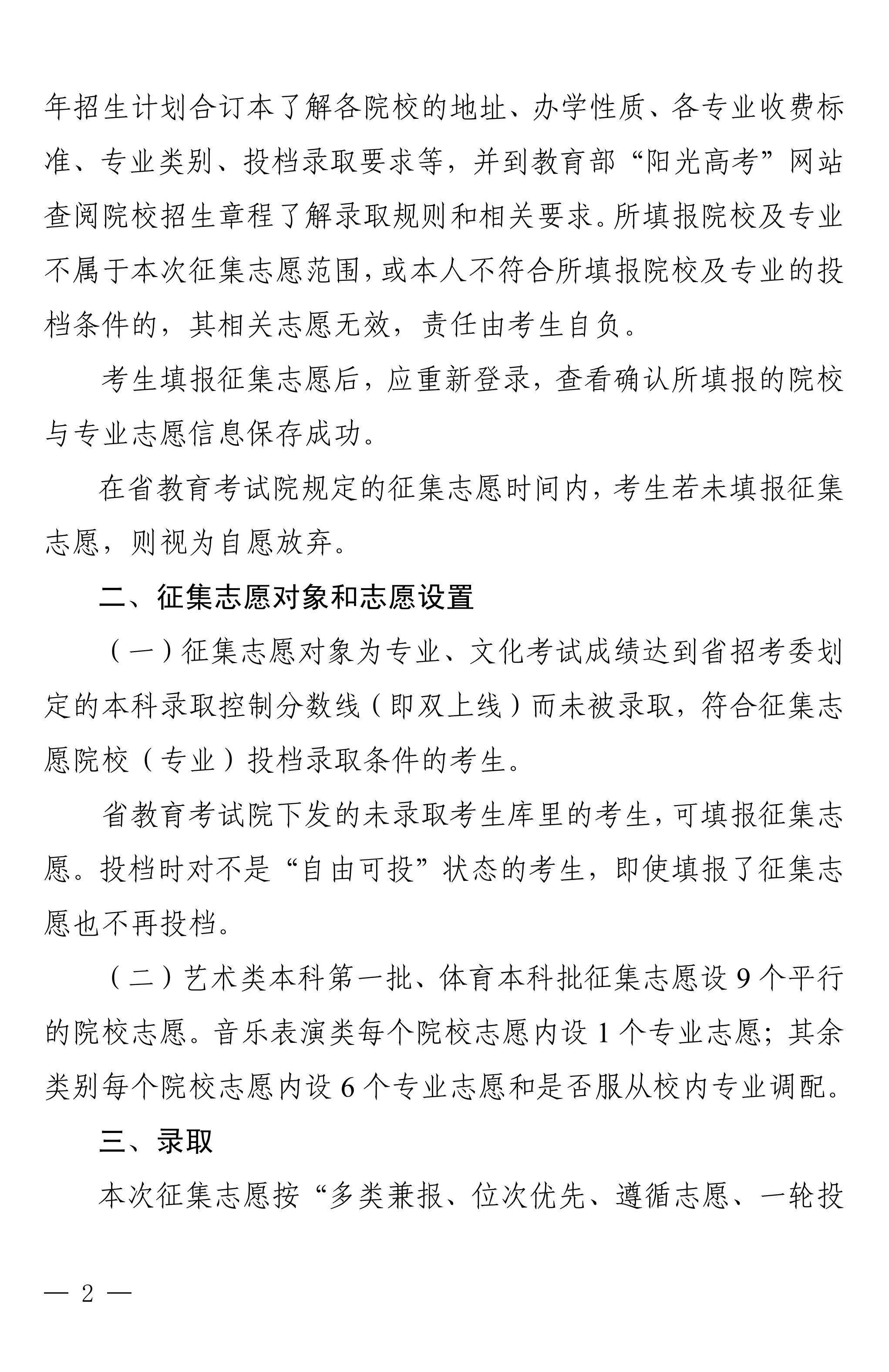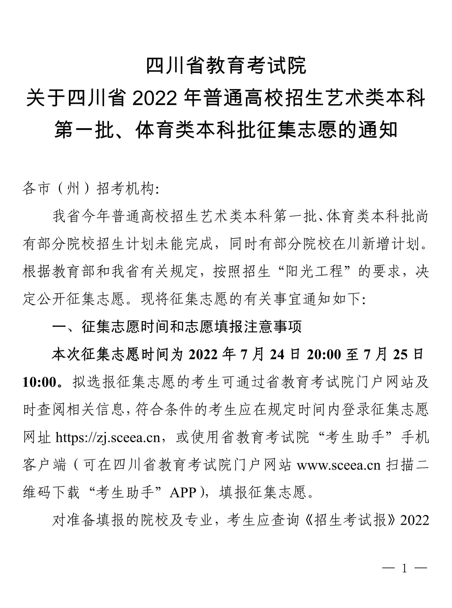 关于艺术类本科第一批、体育类本科批录取未完成计划征集志愿的通知