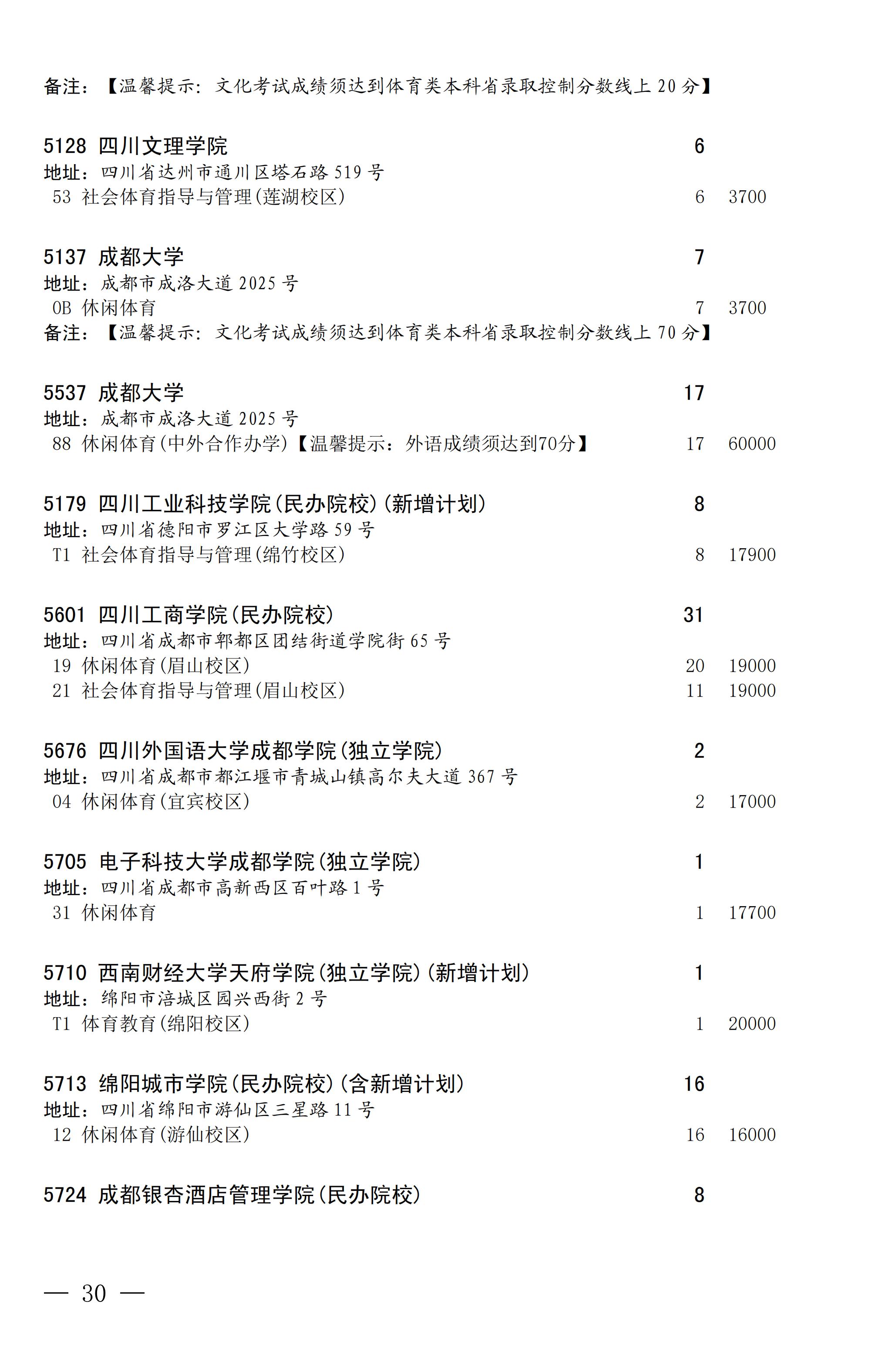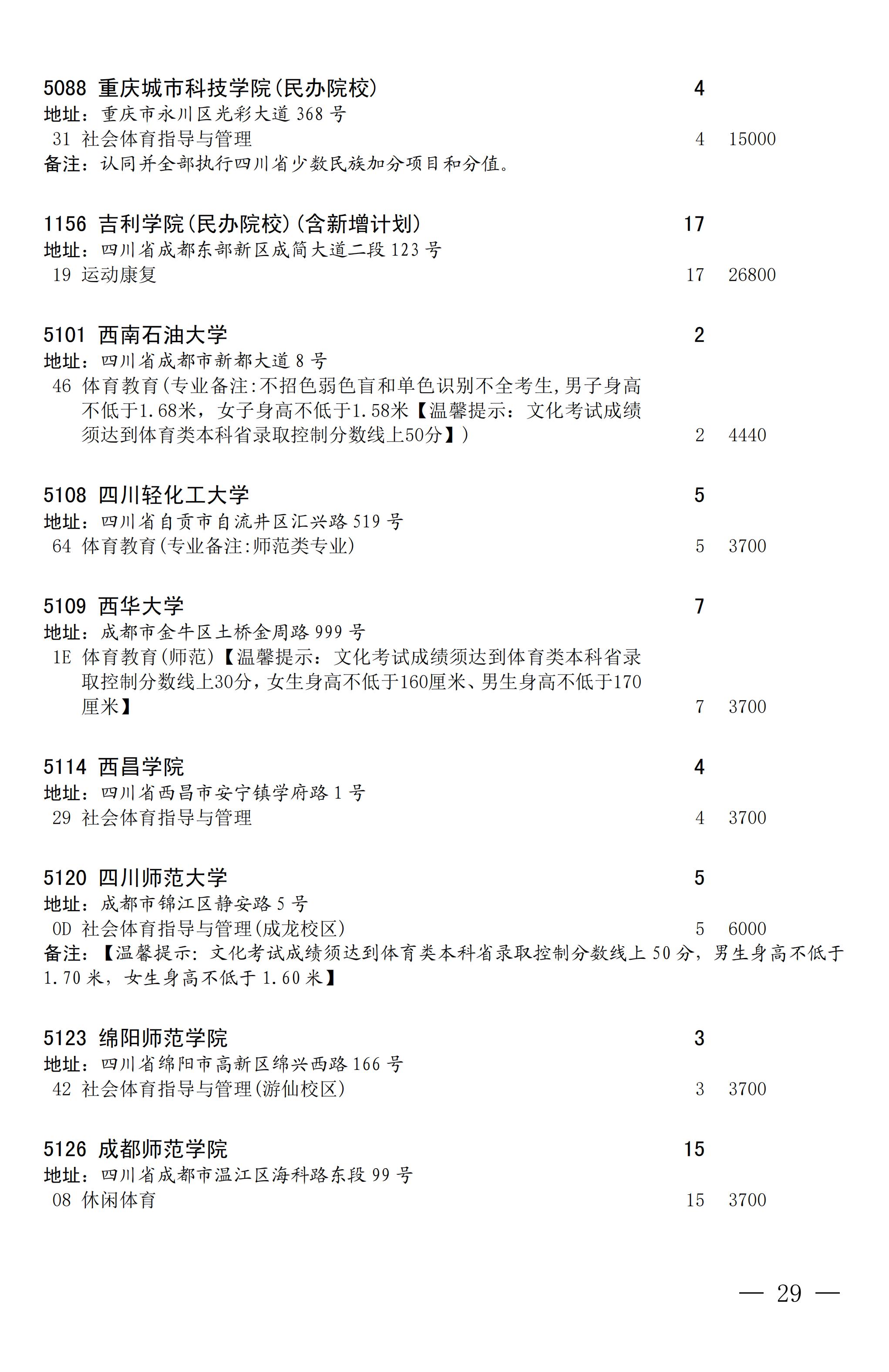 四川省2025年普通高校专升本招生专业及计划