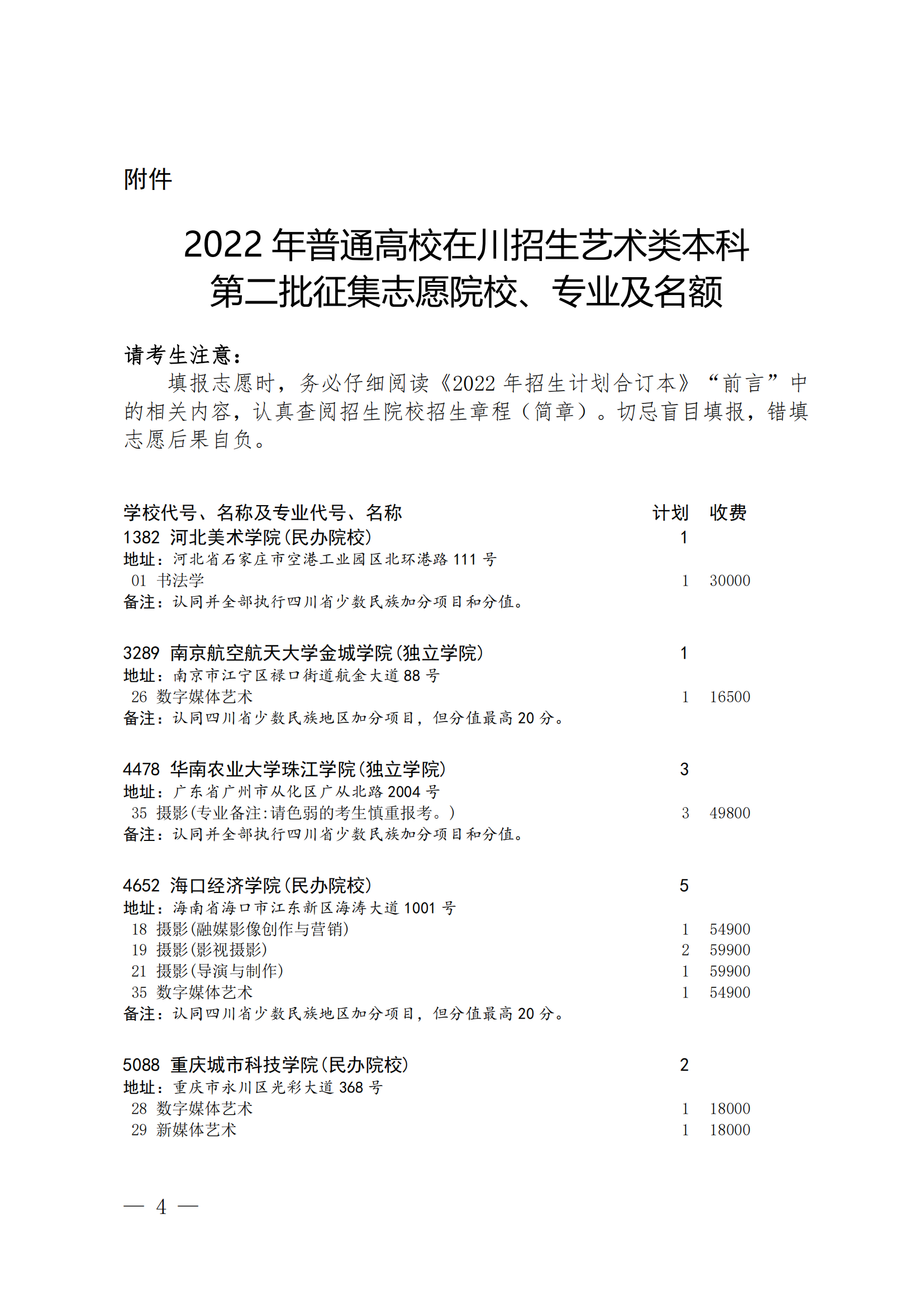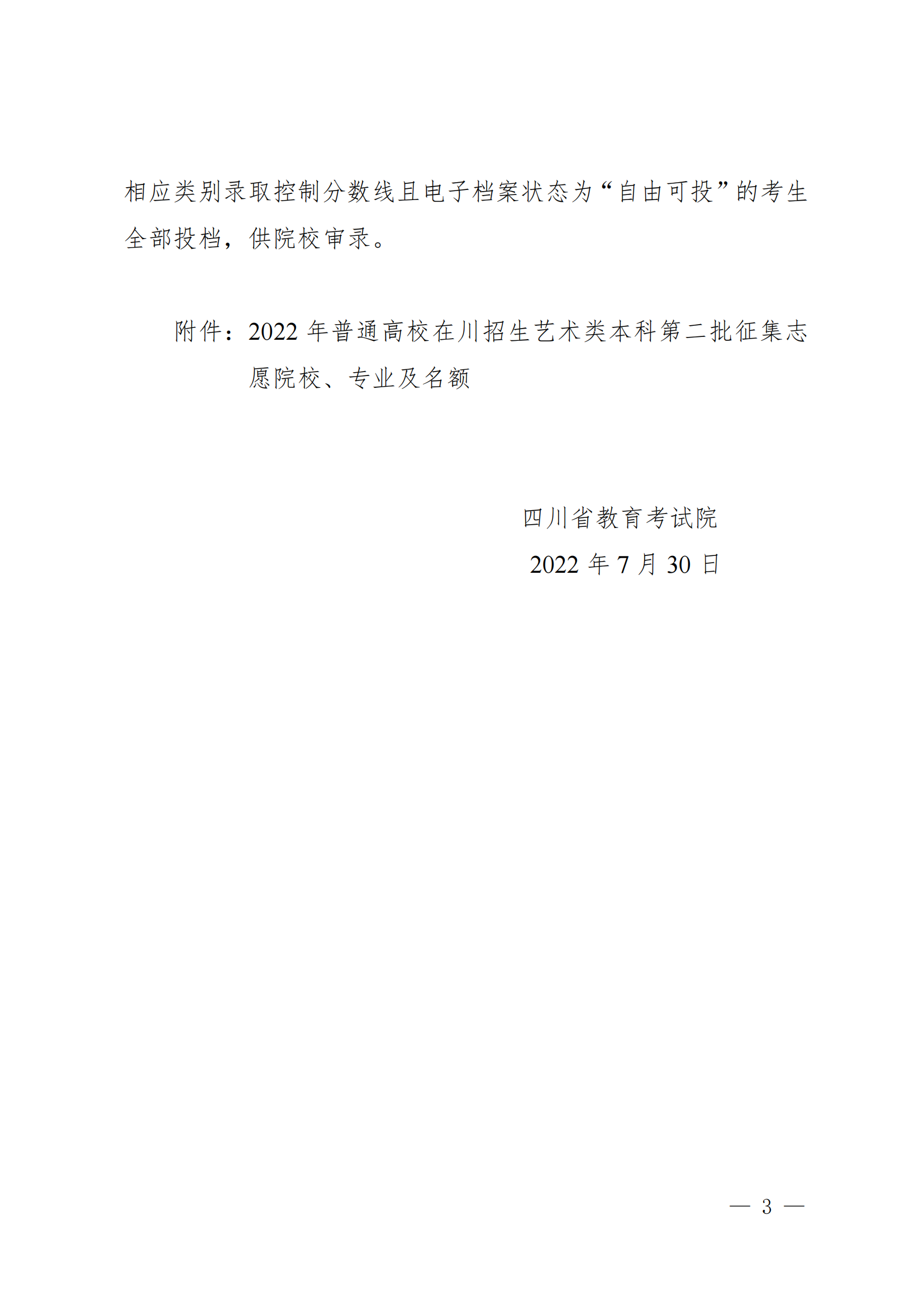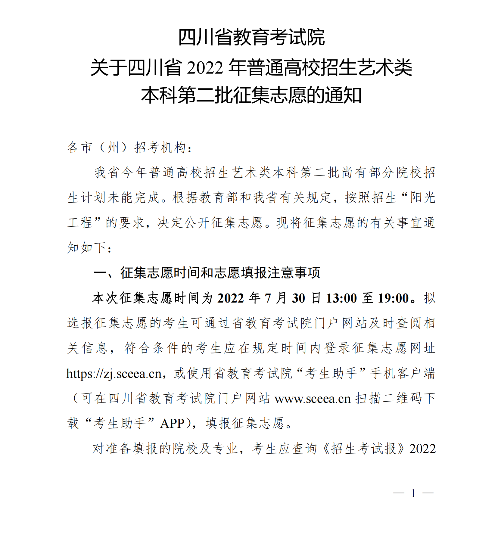 关于四川省2022年普通高校招生艺术类本科第二批征集志愿的通知