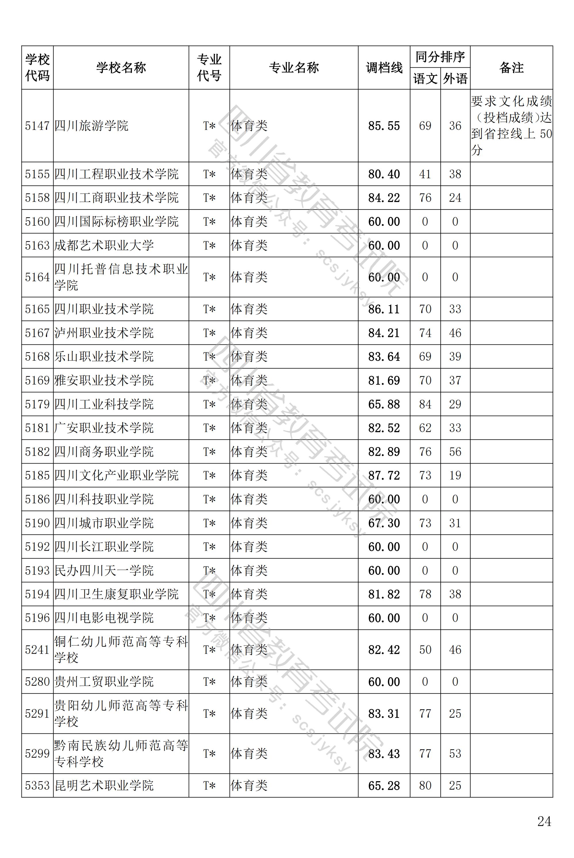 四川省2022年普通高等学校艺术体育类专业招生专科批调档线