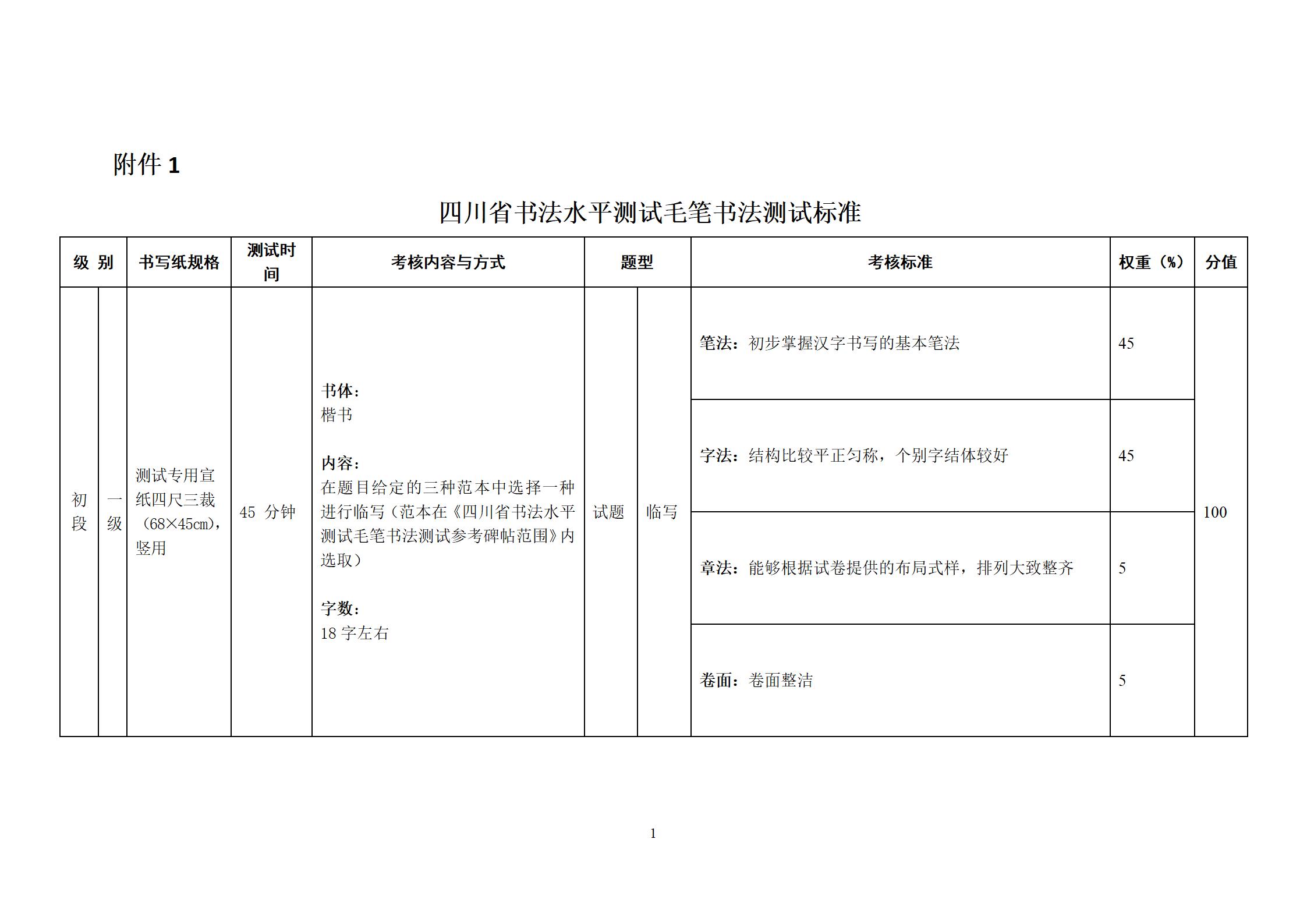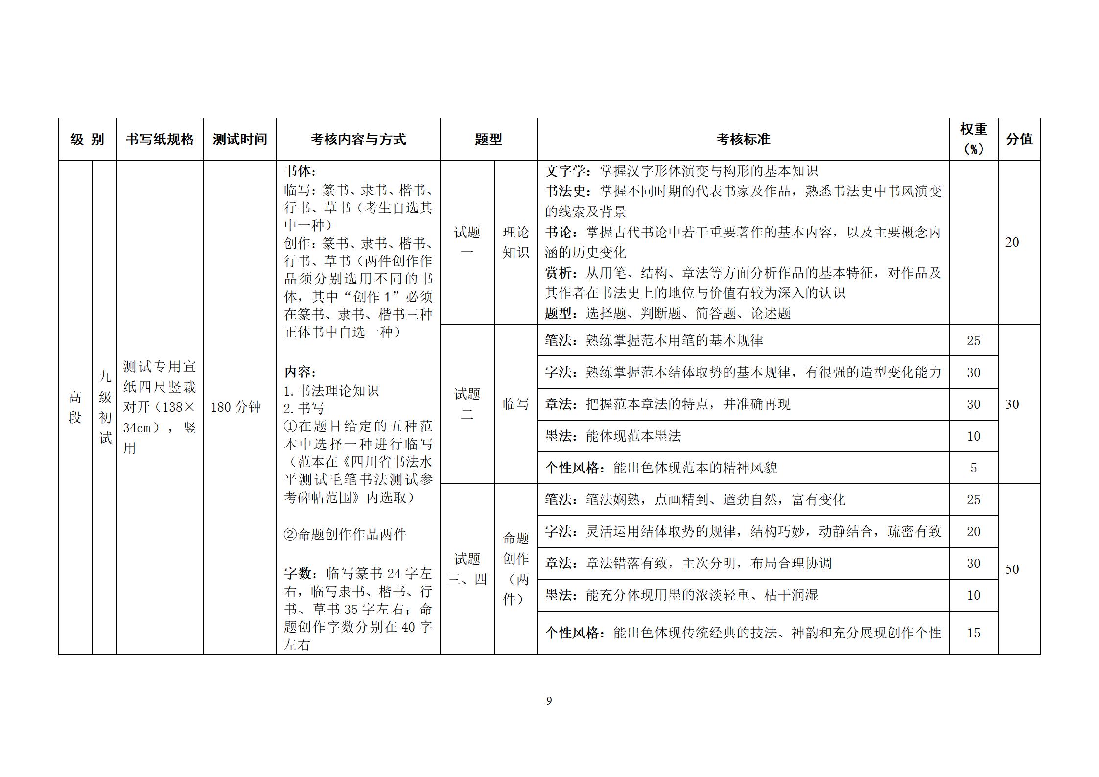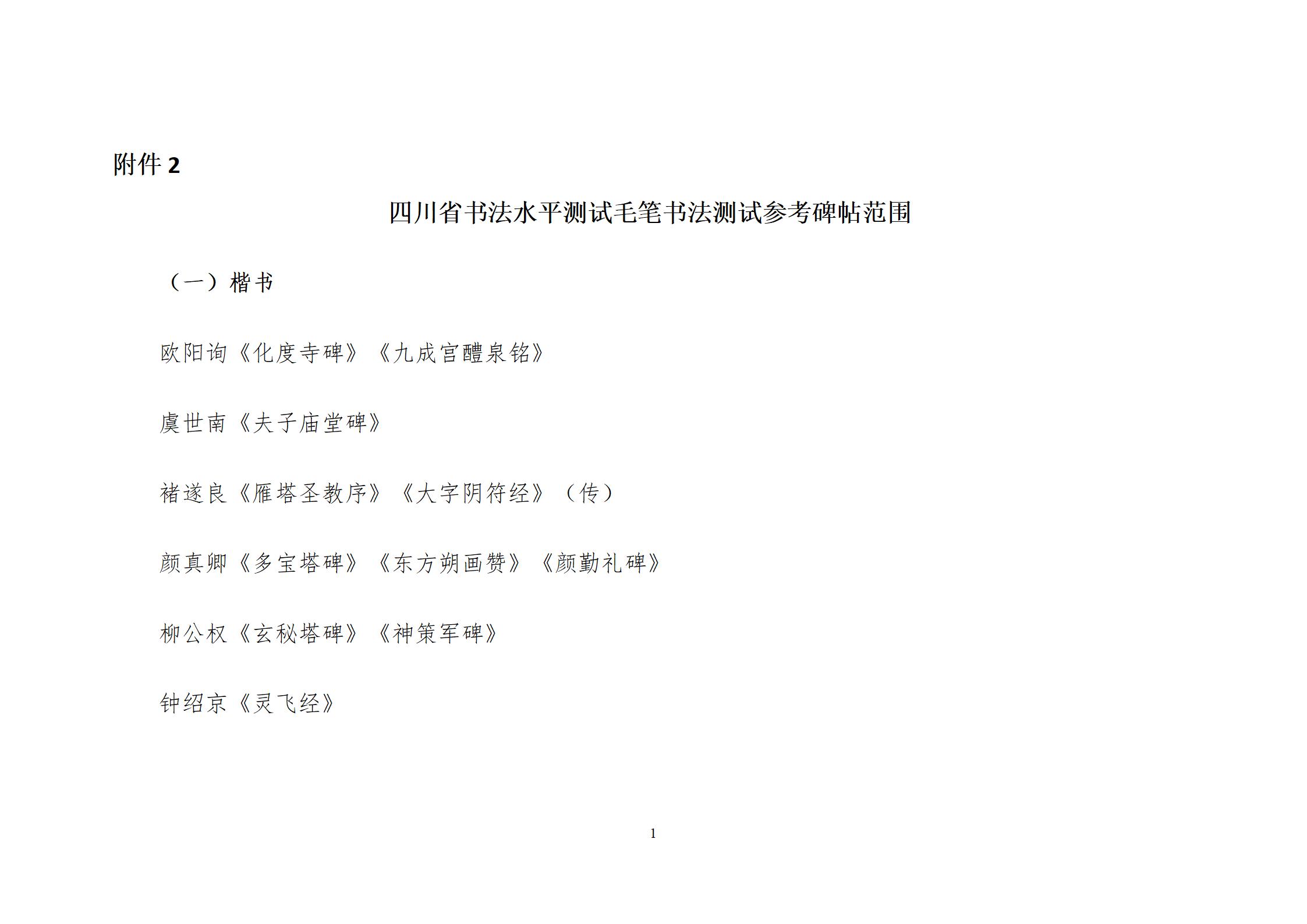 四川省书法水平测试毛笔书法测试大纲 (2022年版)