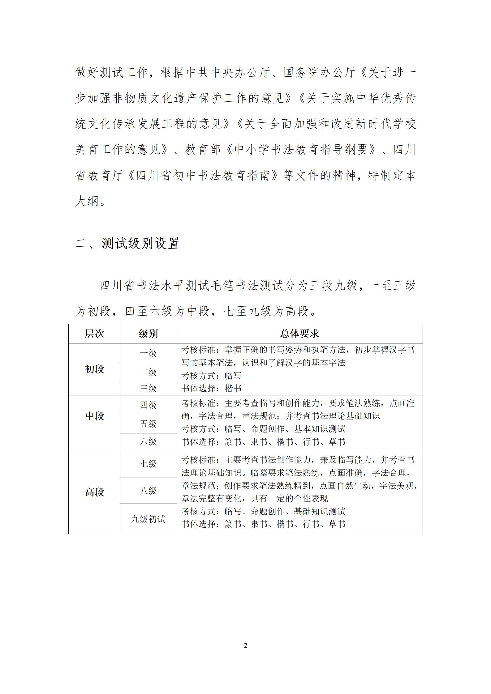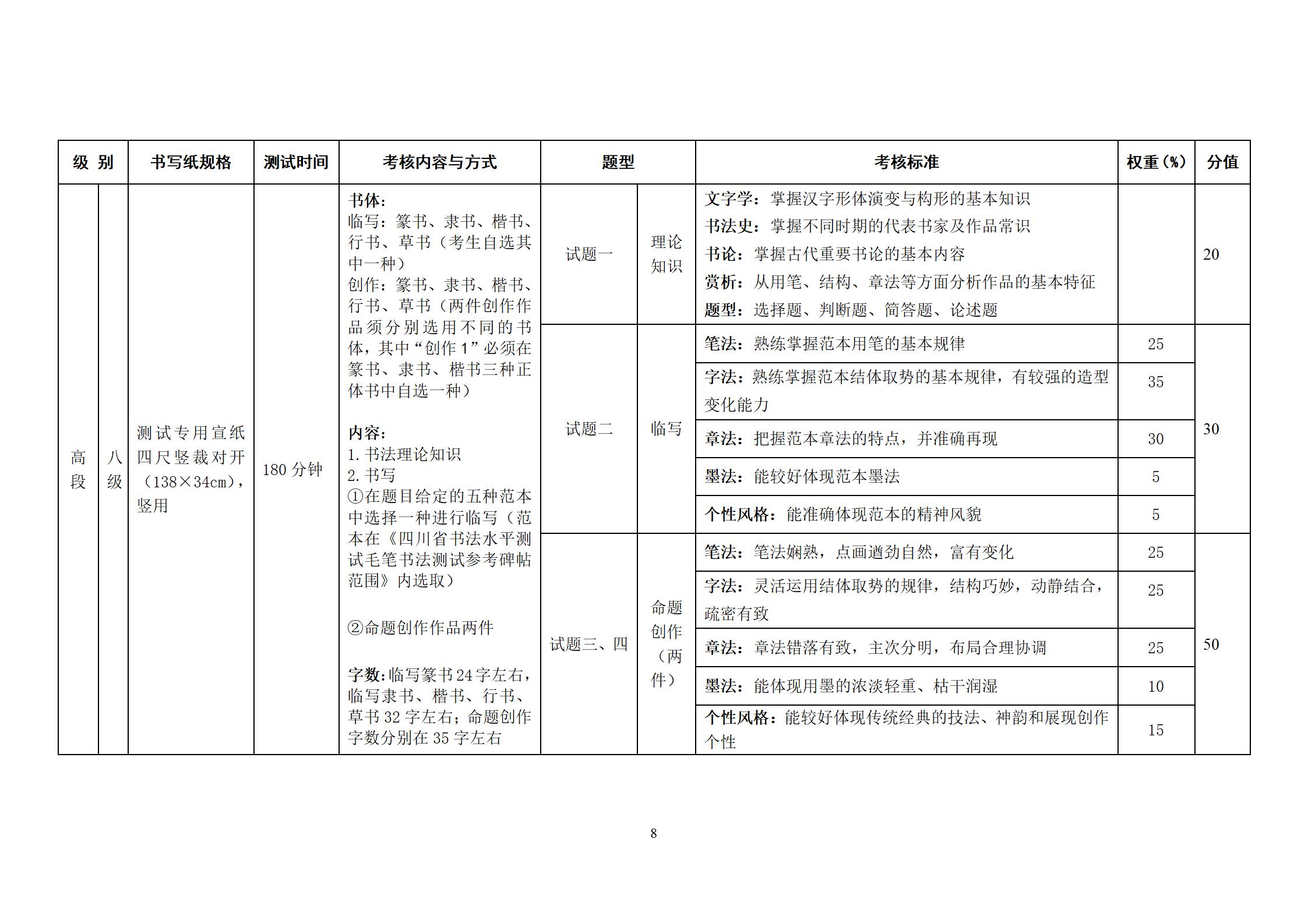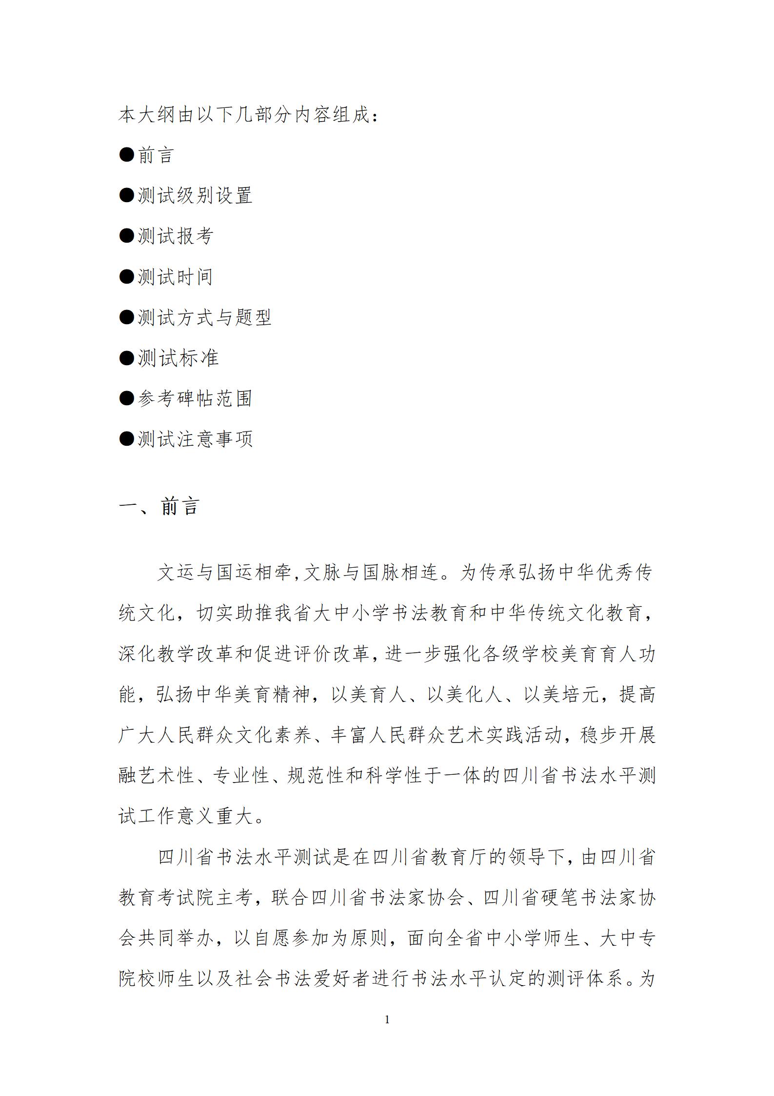 四川省书法水平测试毛笔书法测试大纲 (2022年版)
