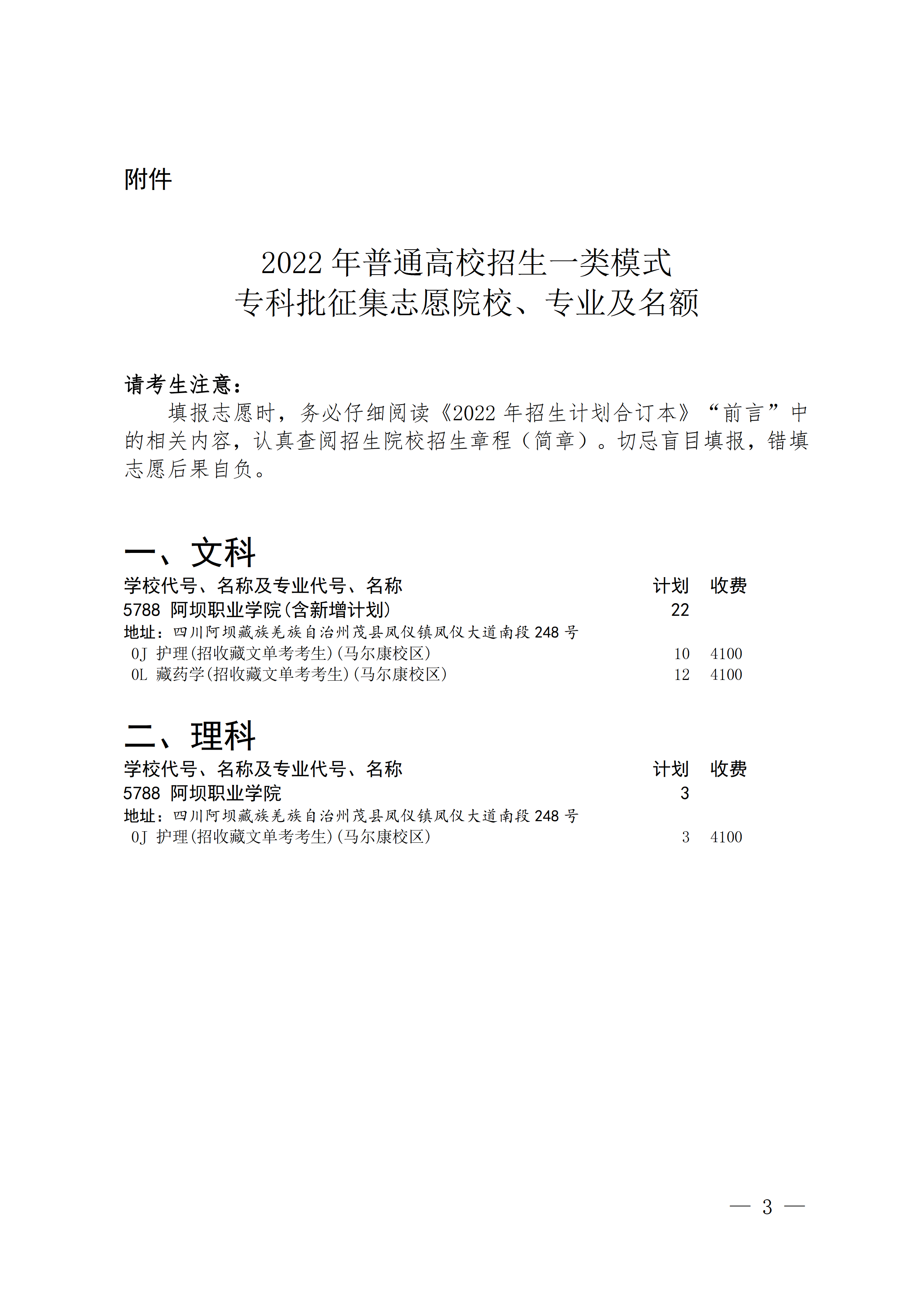 关于普通高校一类模式专科批未完成计划院校征集志愿的通知