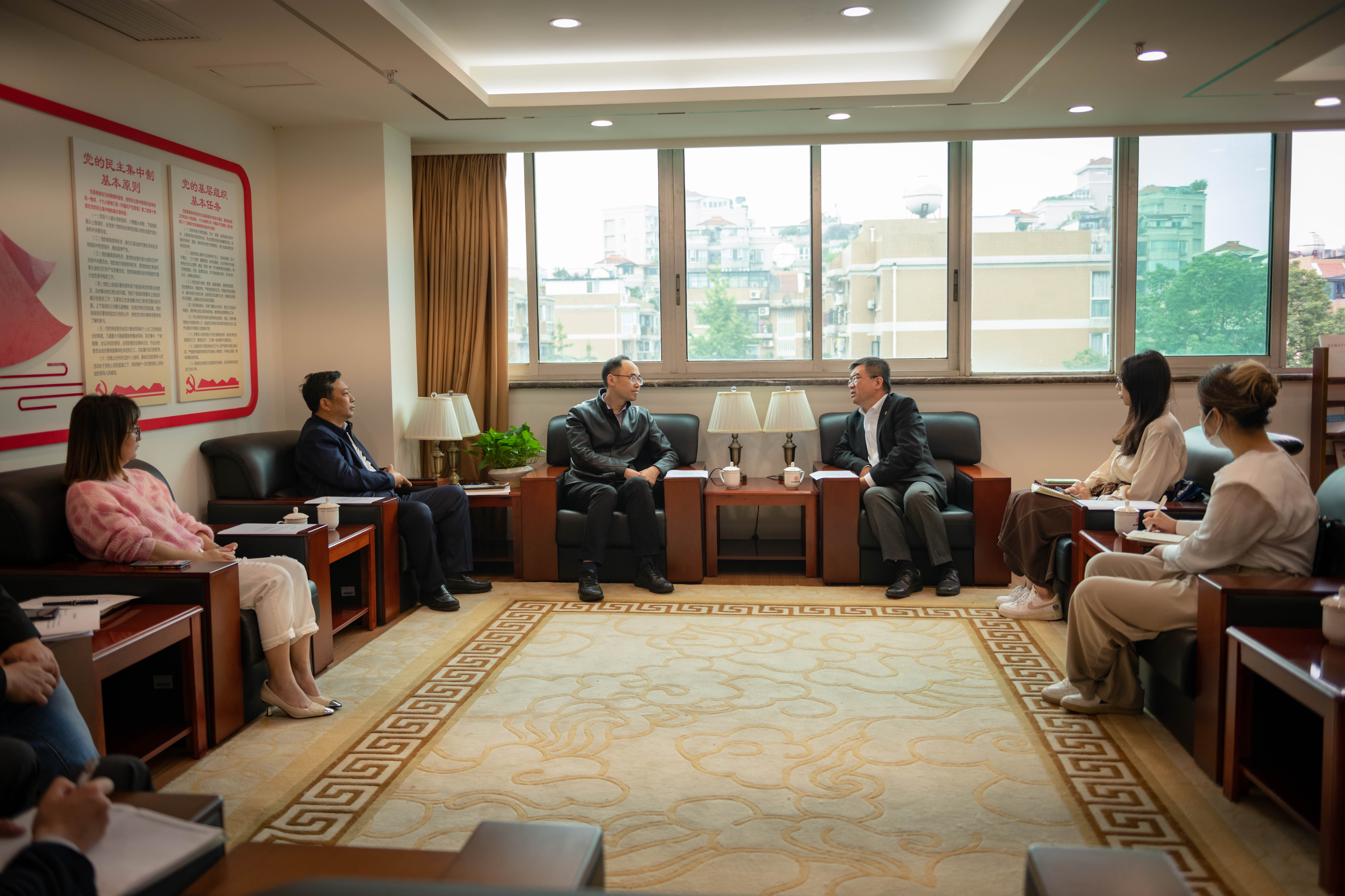 10月27日,香港科技大学(广州)学生事务办公室署理院长甄勇一行到我院座谈交流。党委书记、院长丁念友主持座谈会。