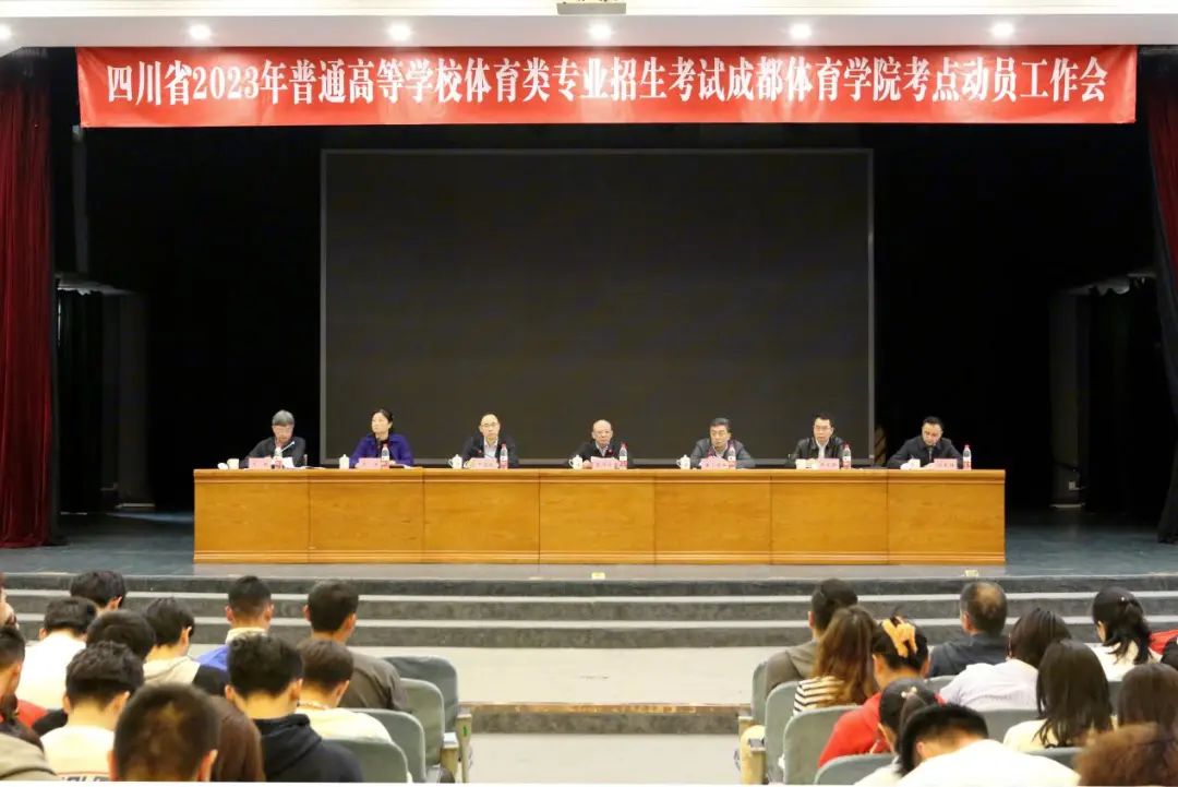 成都体育学院、四川师范大学、省教育考试院分管负责同志及相关处室负责同志,四川省2023年普通高校招生体育类专业考试委员会各专项委员、主考教师、考试工作人员、学生志愿者1100余人参加会议。