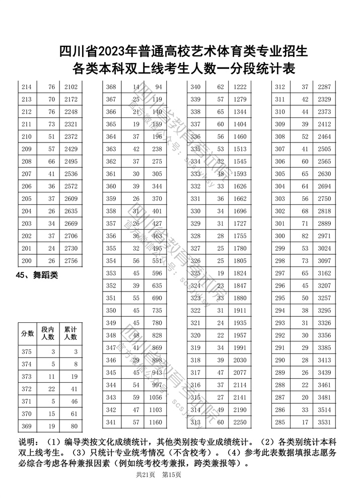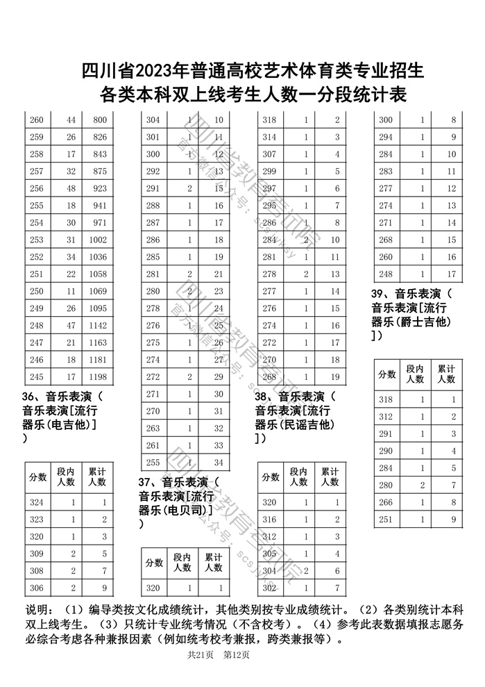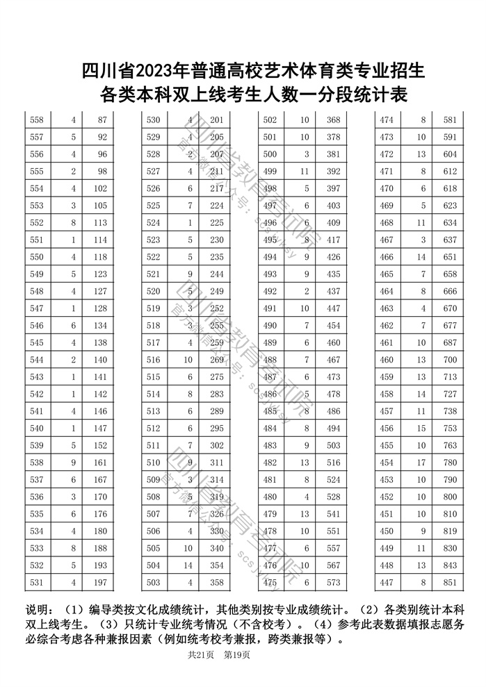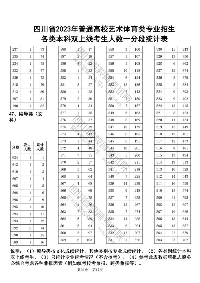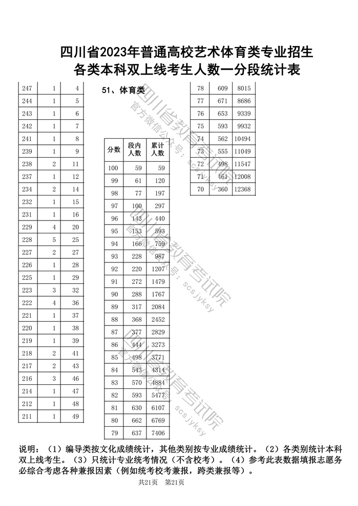 官方发布!四川省2023年普通高校艺术体育类专业招生各类本科双上线考生人数一分段统计表出炉!