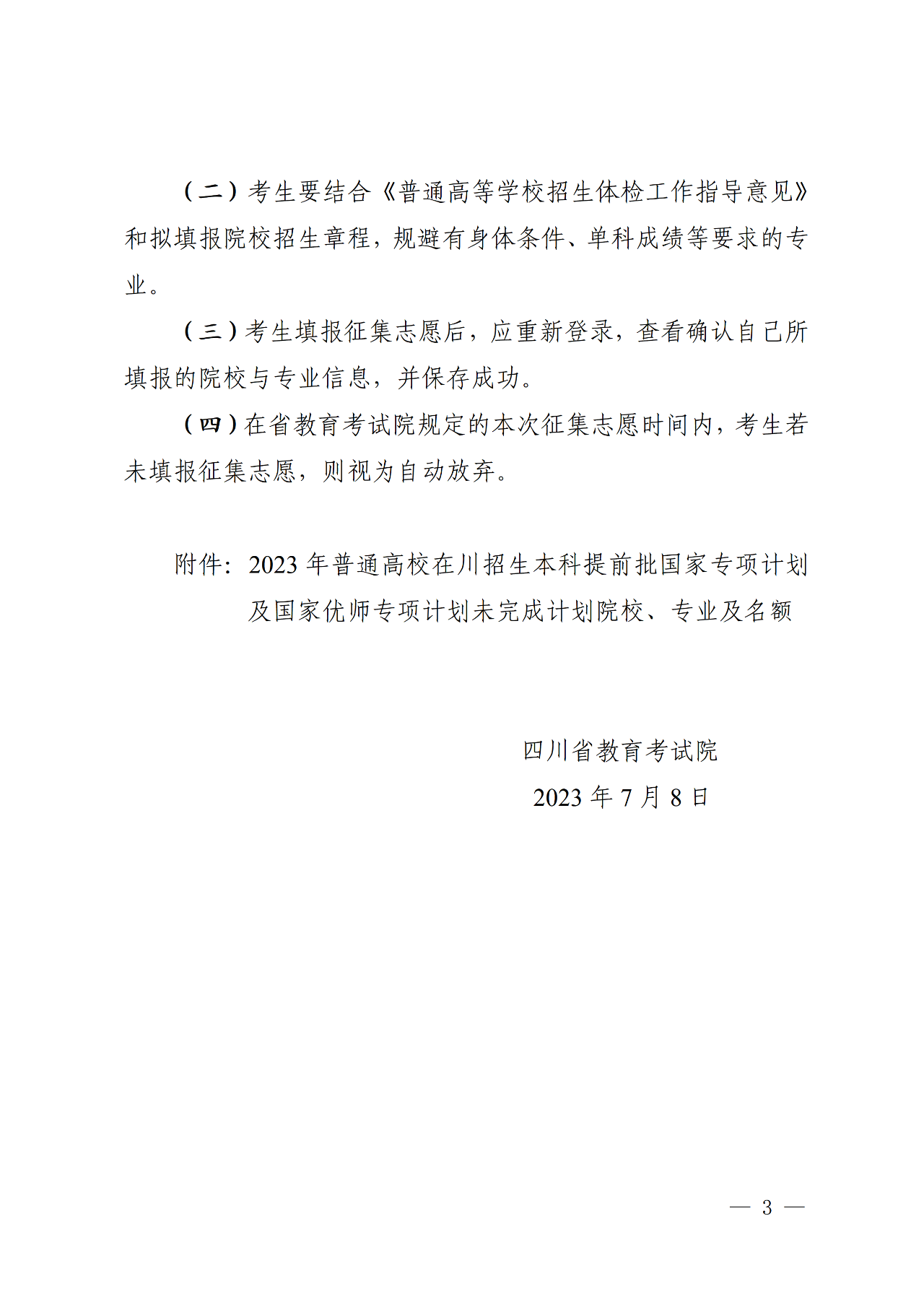 关于本科提前批国家专项计划及国家优师专项计划未完成计划院校征集志愿的通知