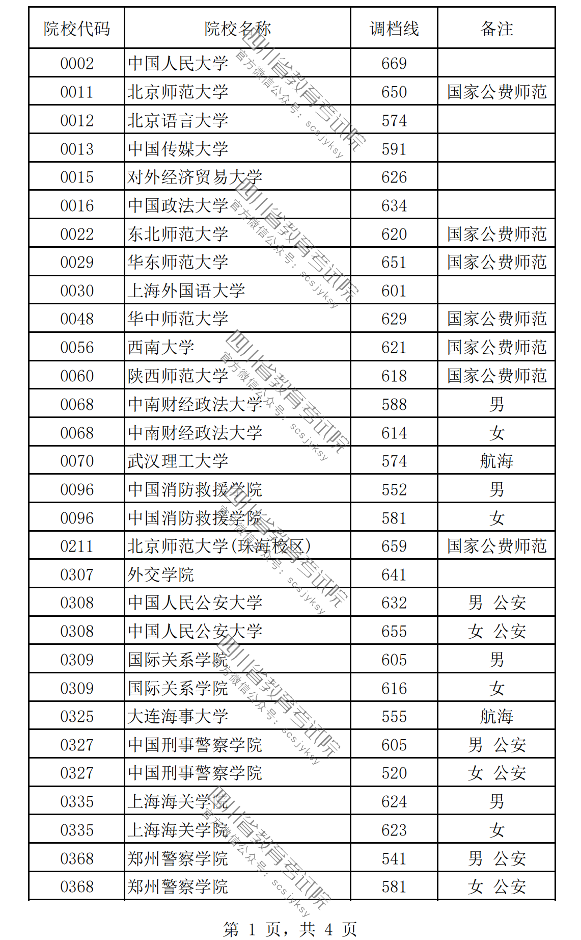 2023年在川招生普通高校本科提前批次录取调档线(一)公布