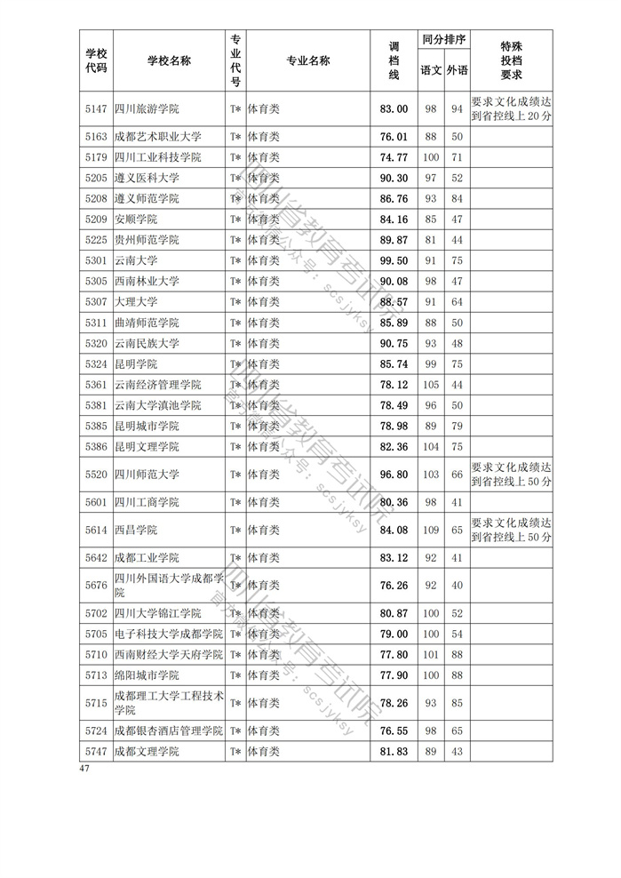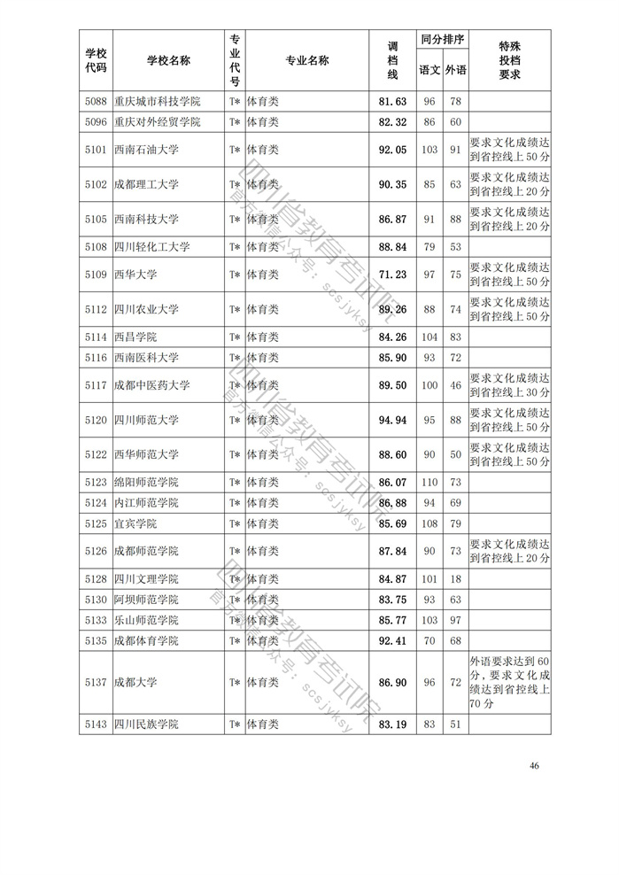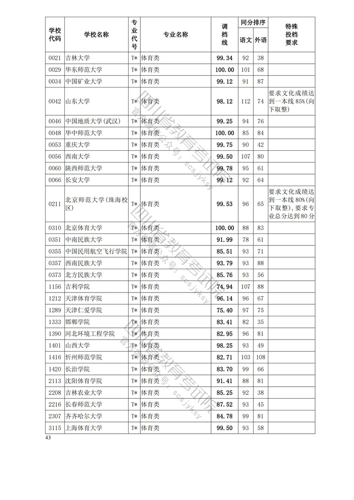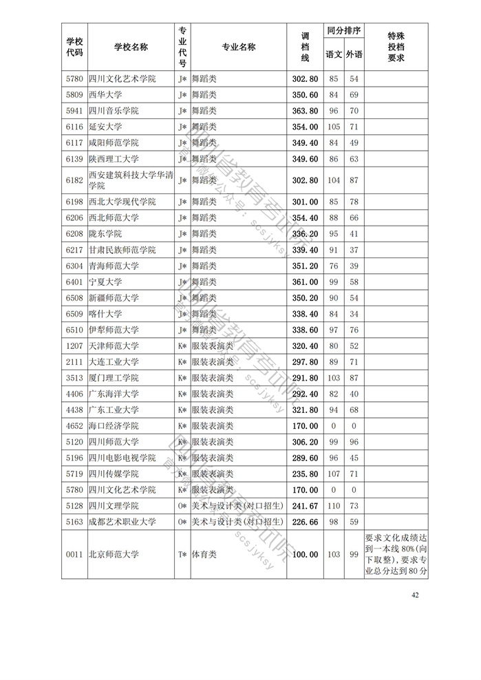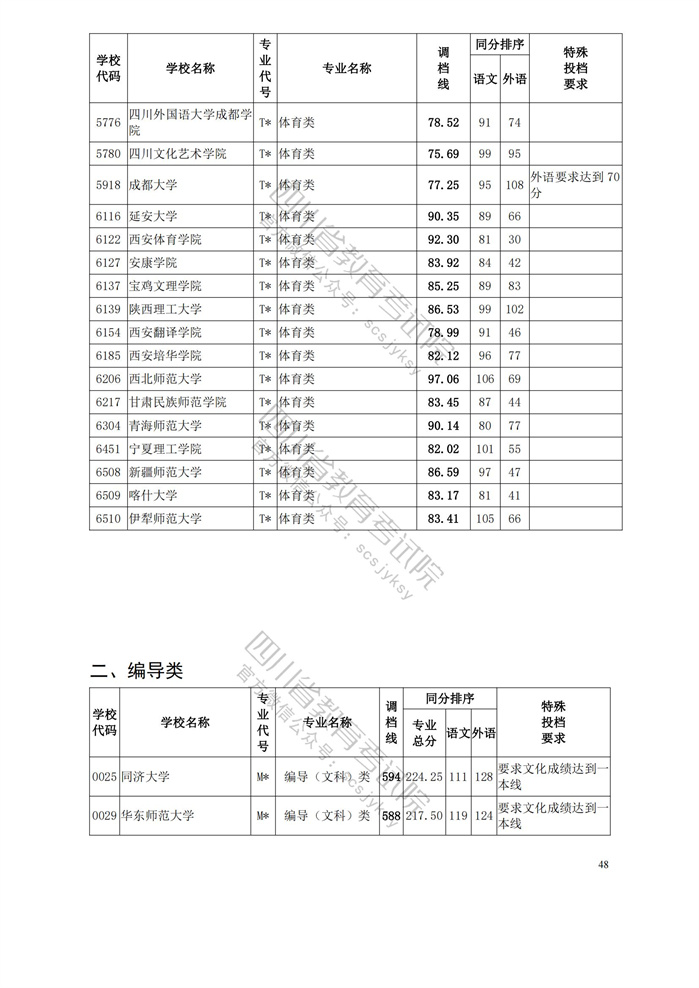 重磅!四川省2023年普通高等学校艺术体育类专业招生艺术类本科第一批、体育类本科批调档线出炉