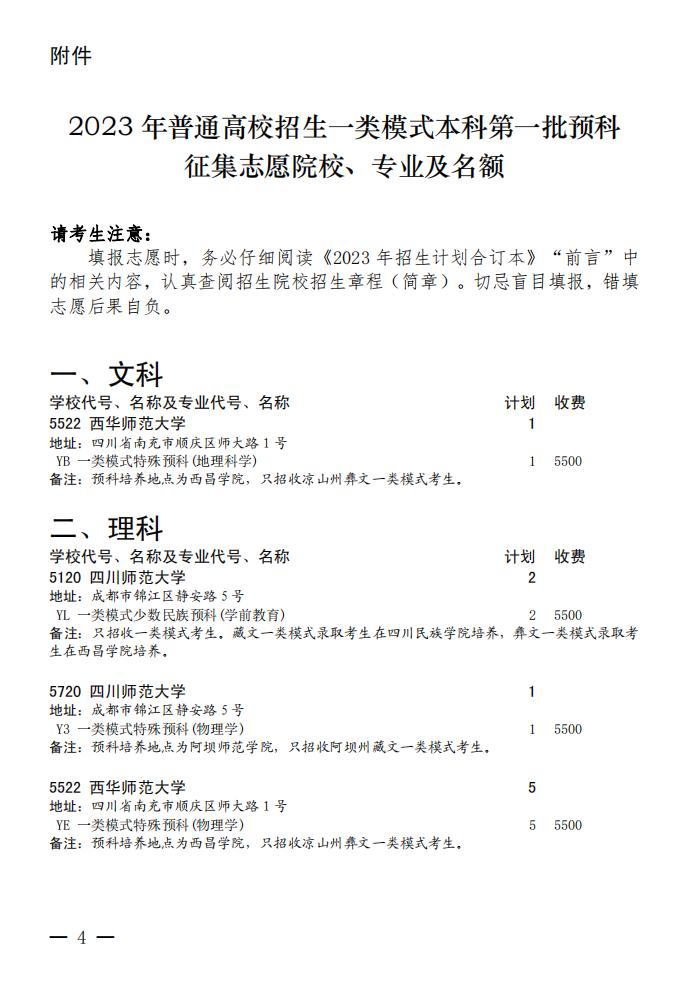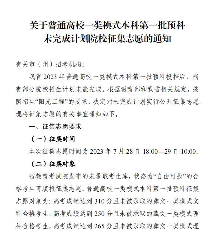 关于普通高校一类模式本科第一批预科未完成计划院校征集志愿的通知