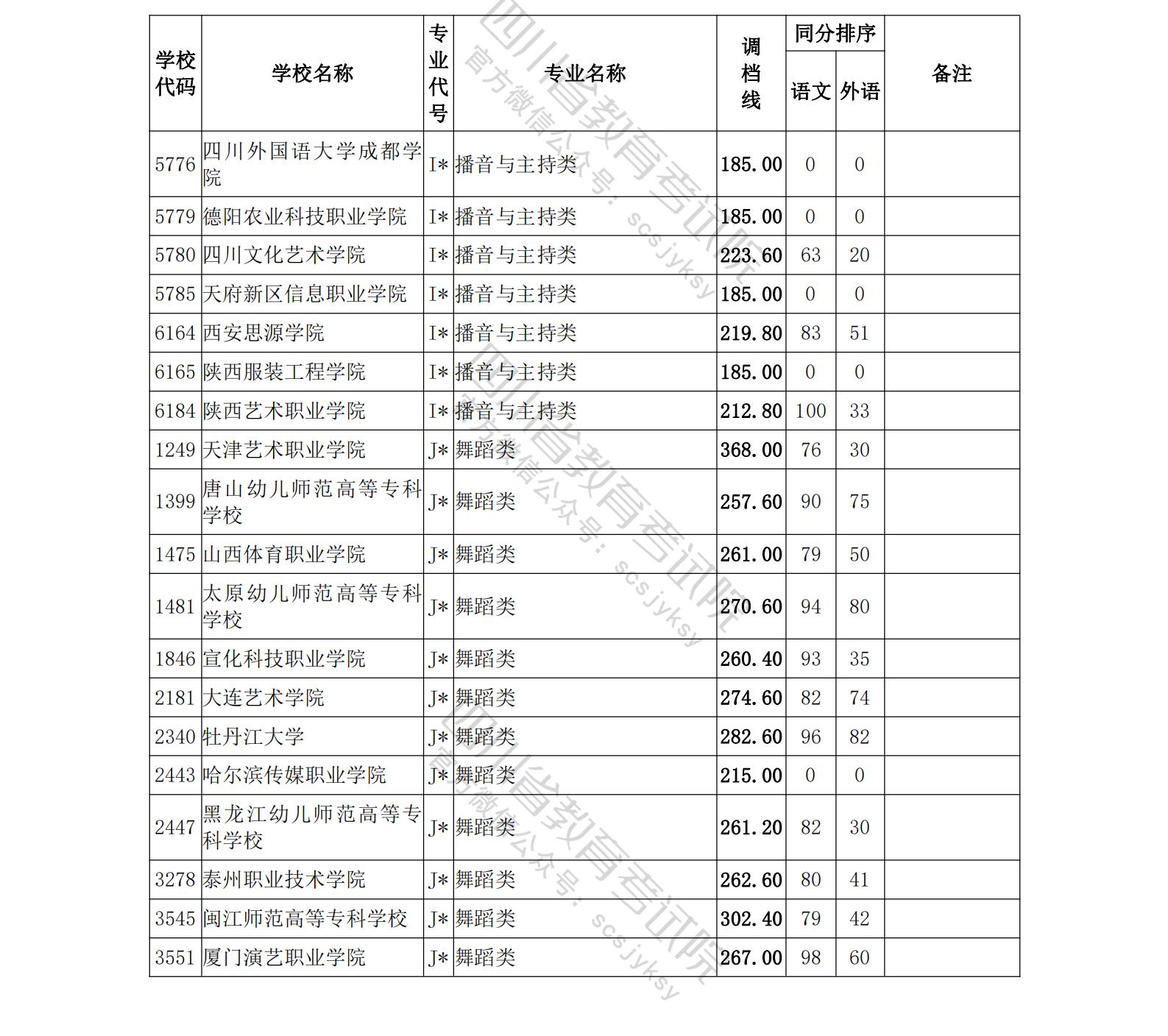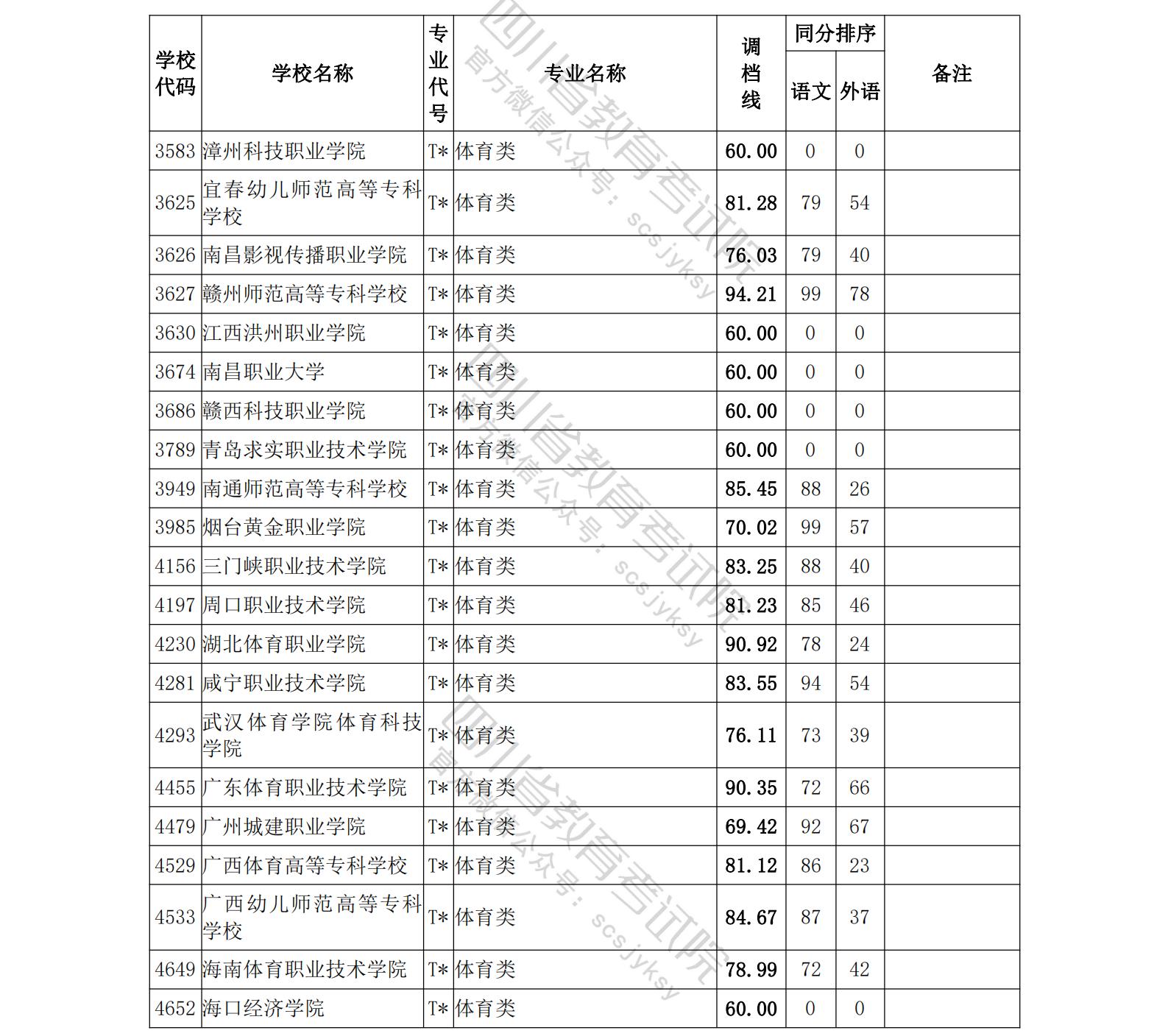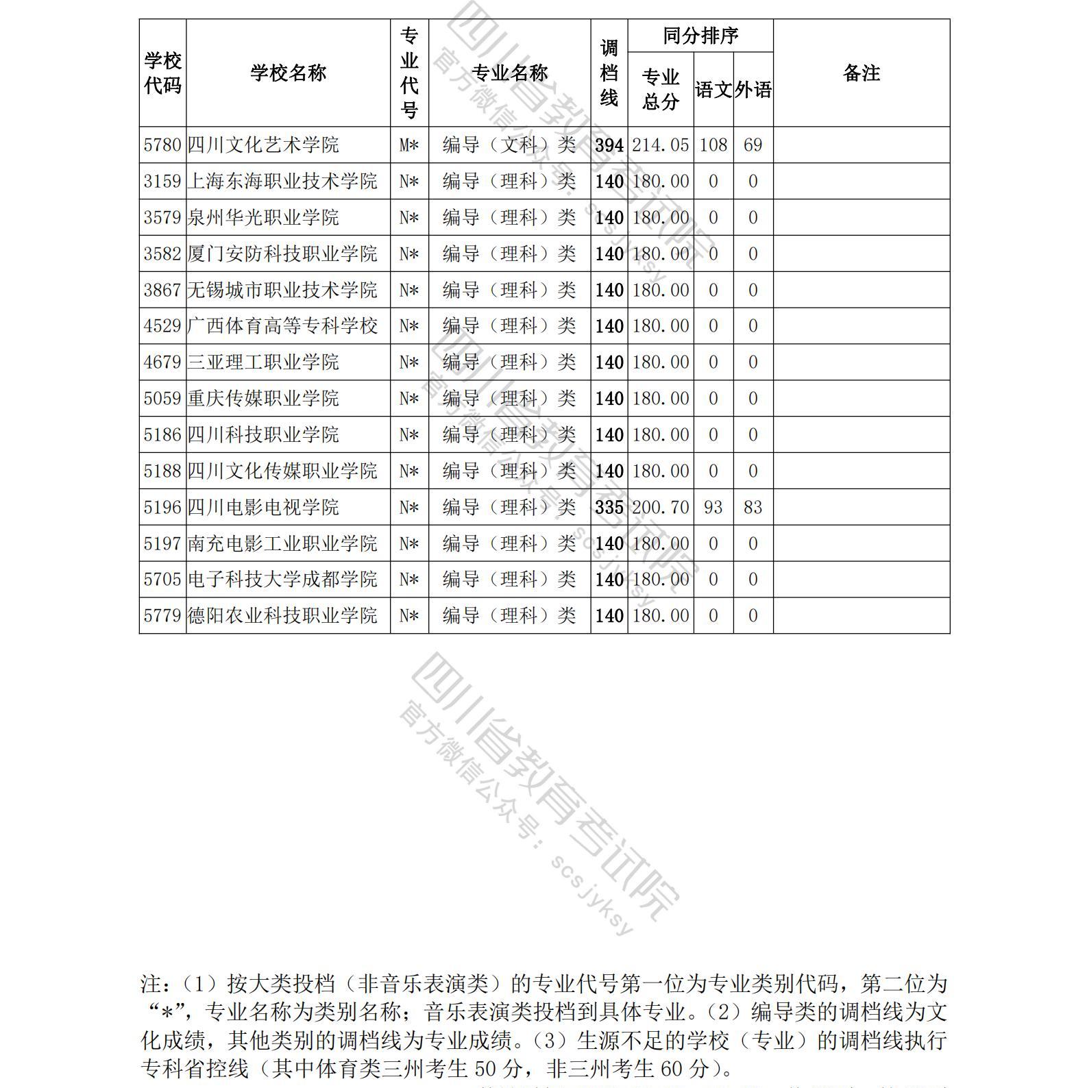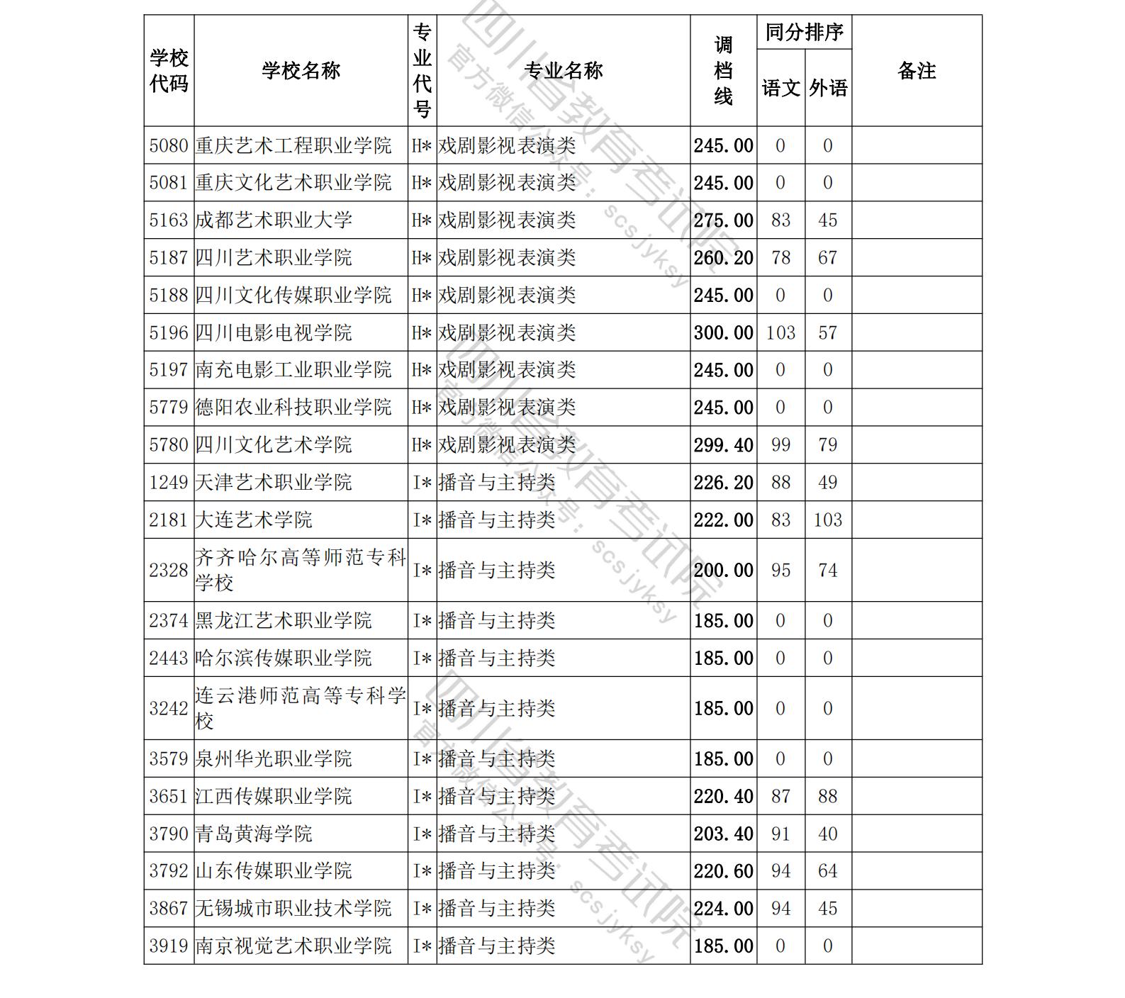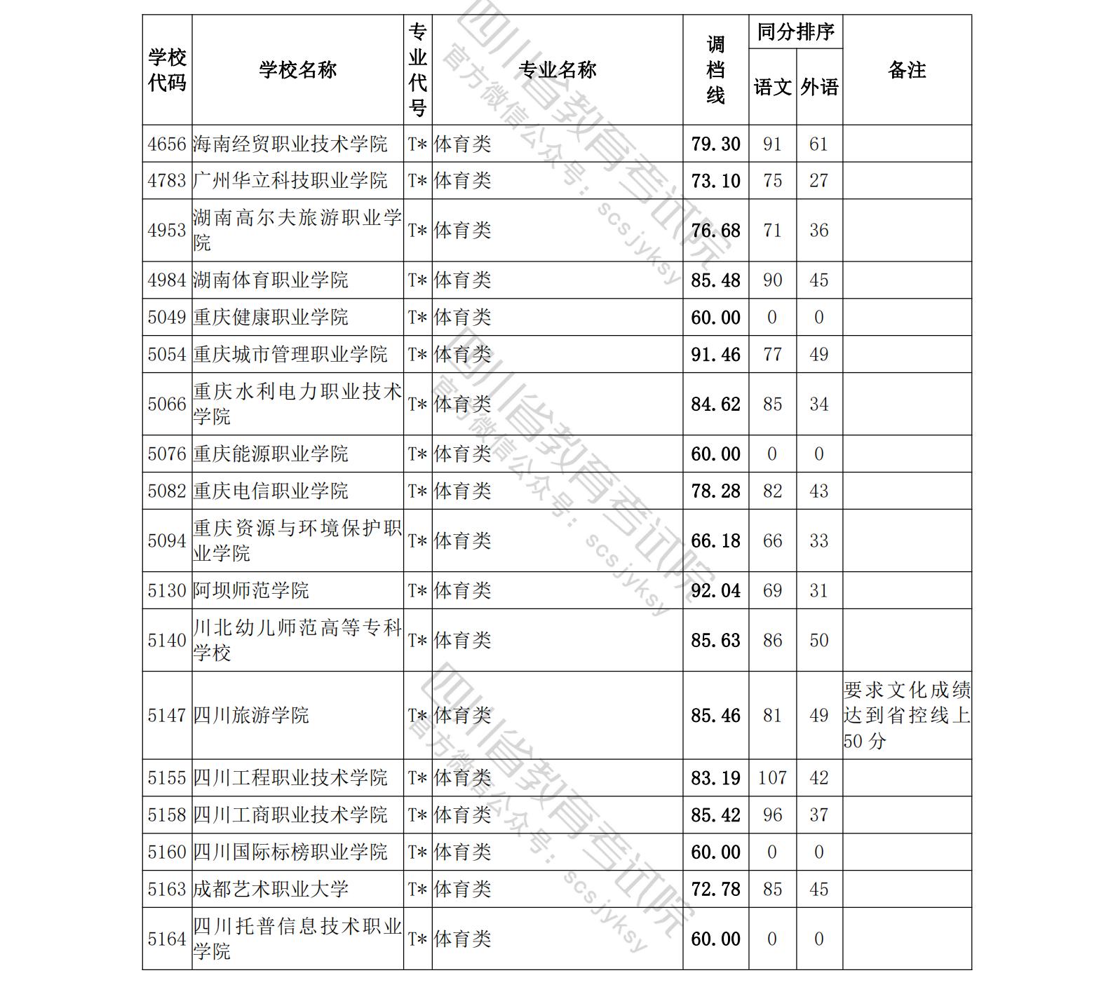 四川省2023年普通高等学校艺术体育类专业招生专科批调档线