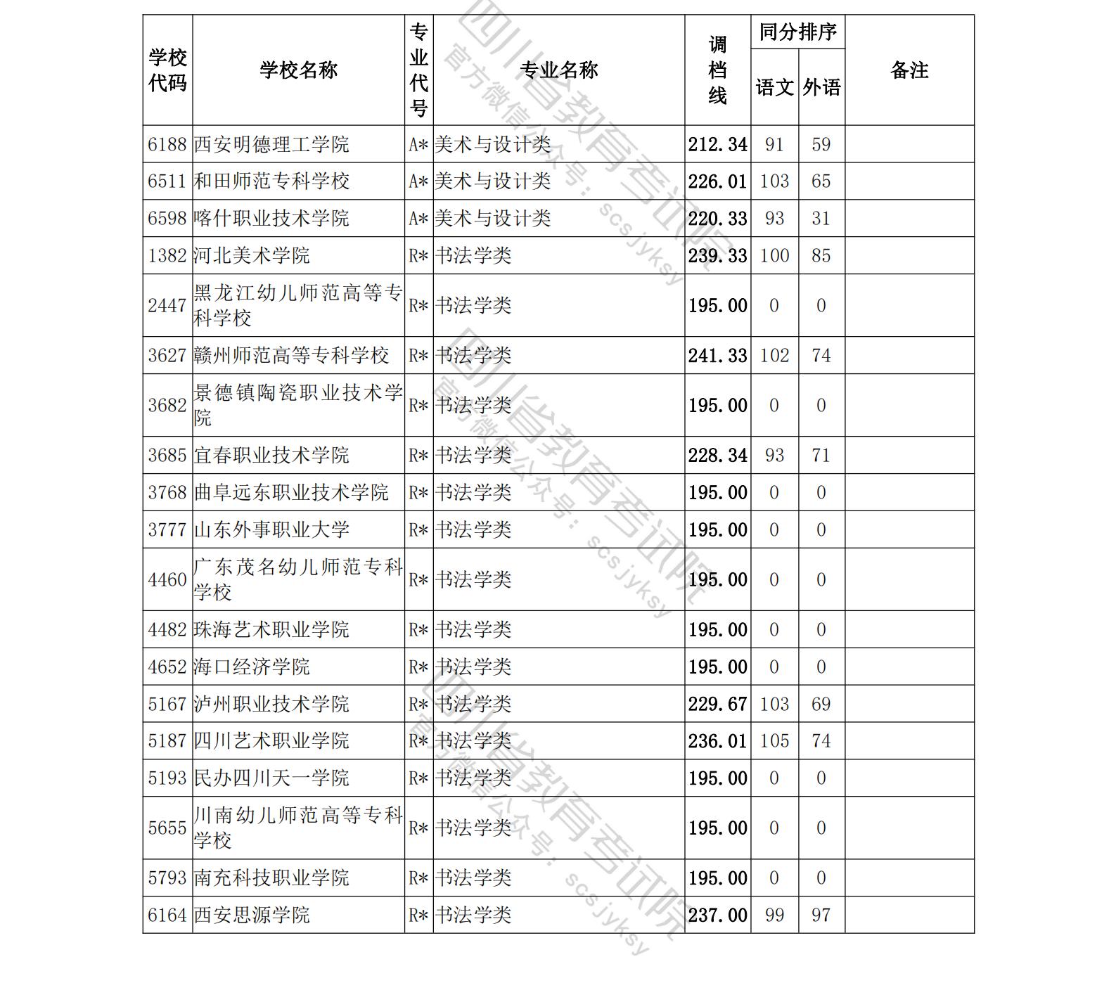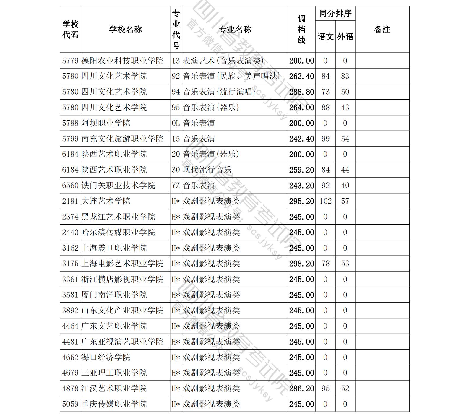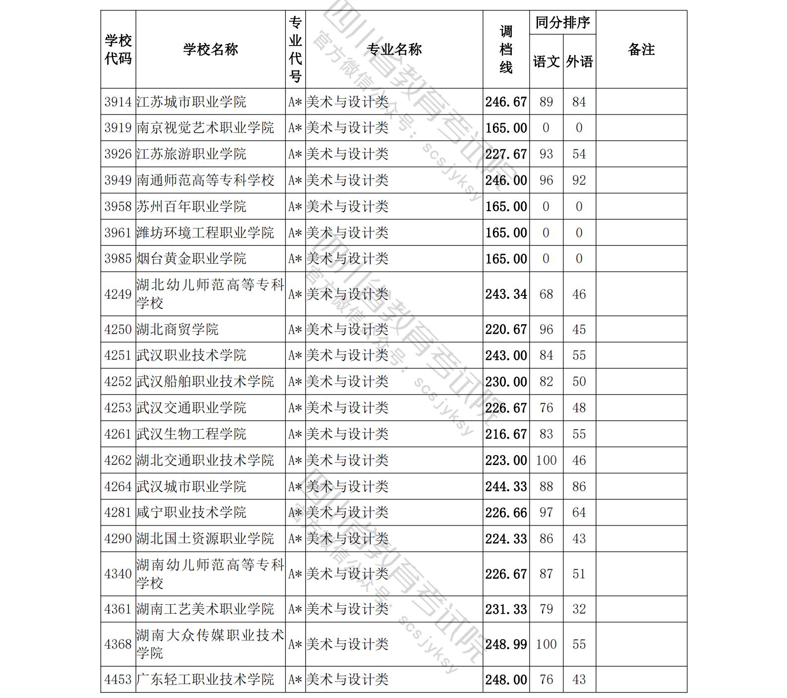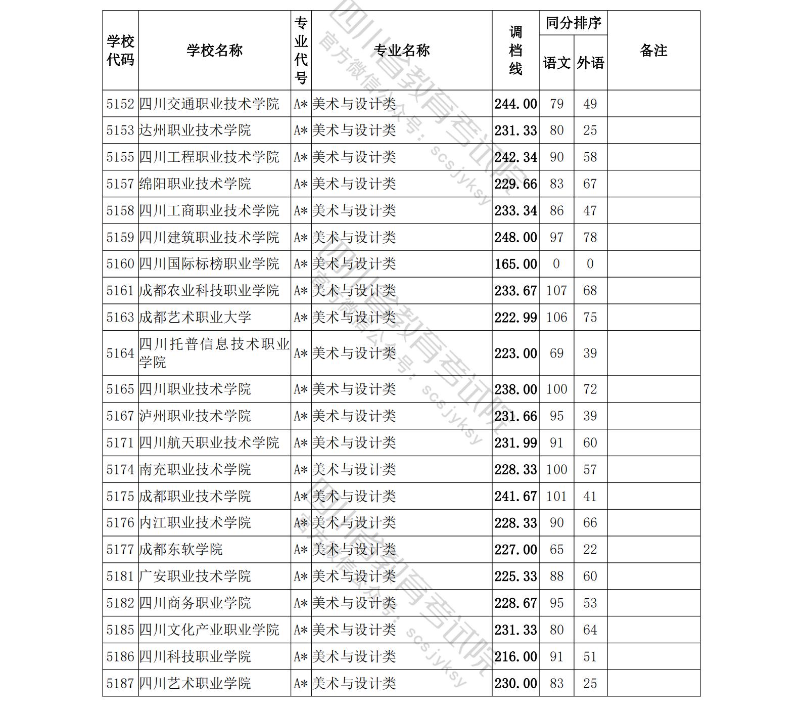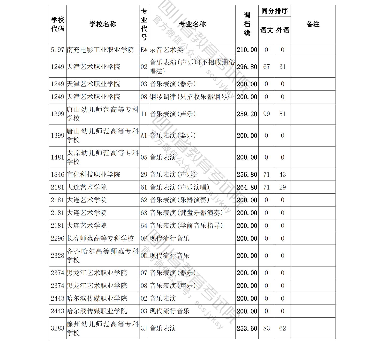 四川省2023年普通高等学校艺术体育类专业招生专科批调档线