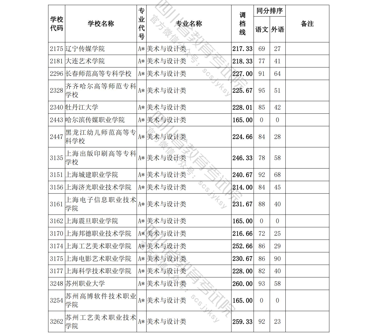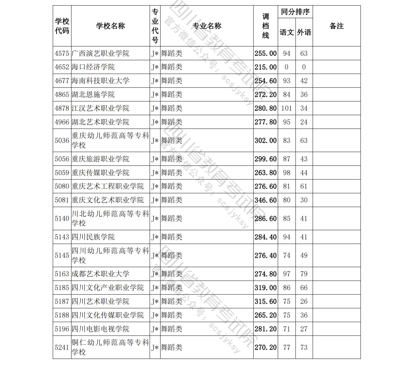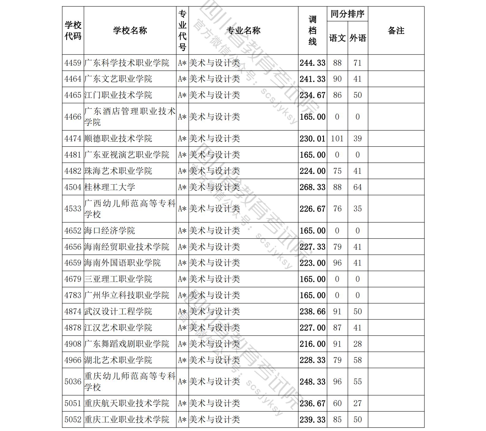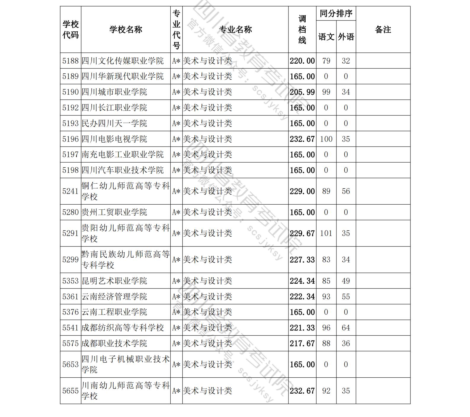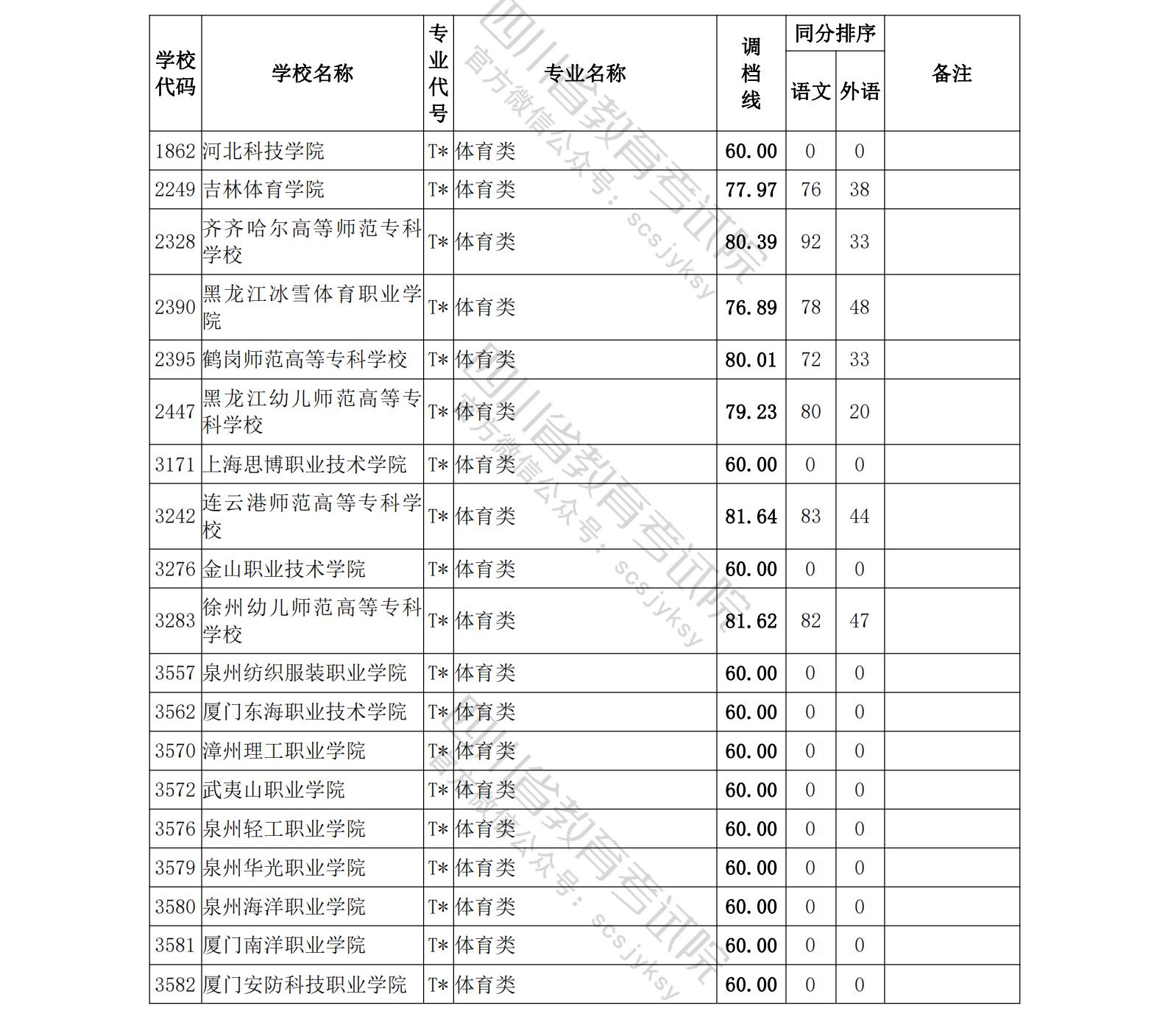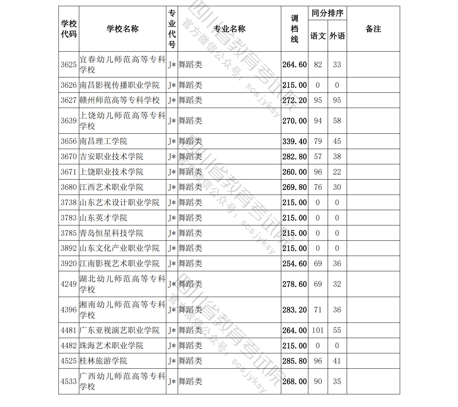 四川省2023年普通高等学校艺术体育类专业招生专科批调档线
