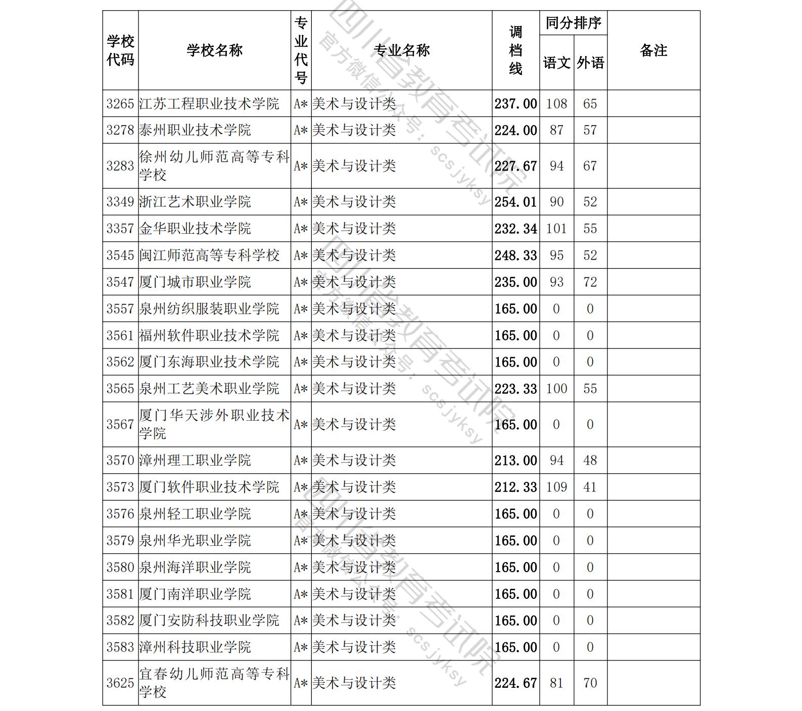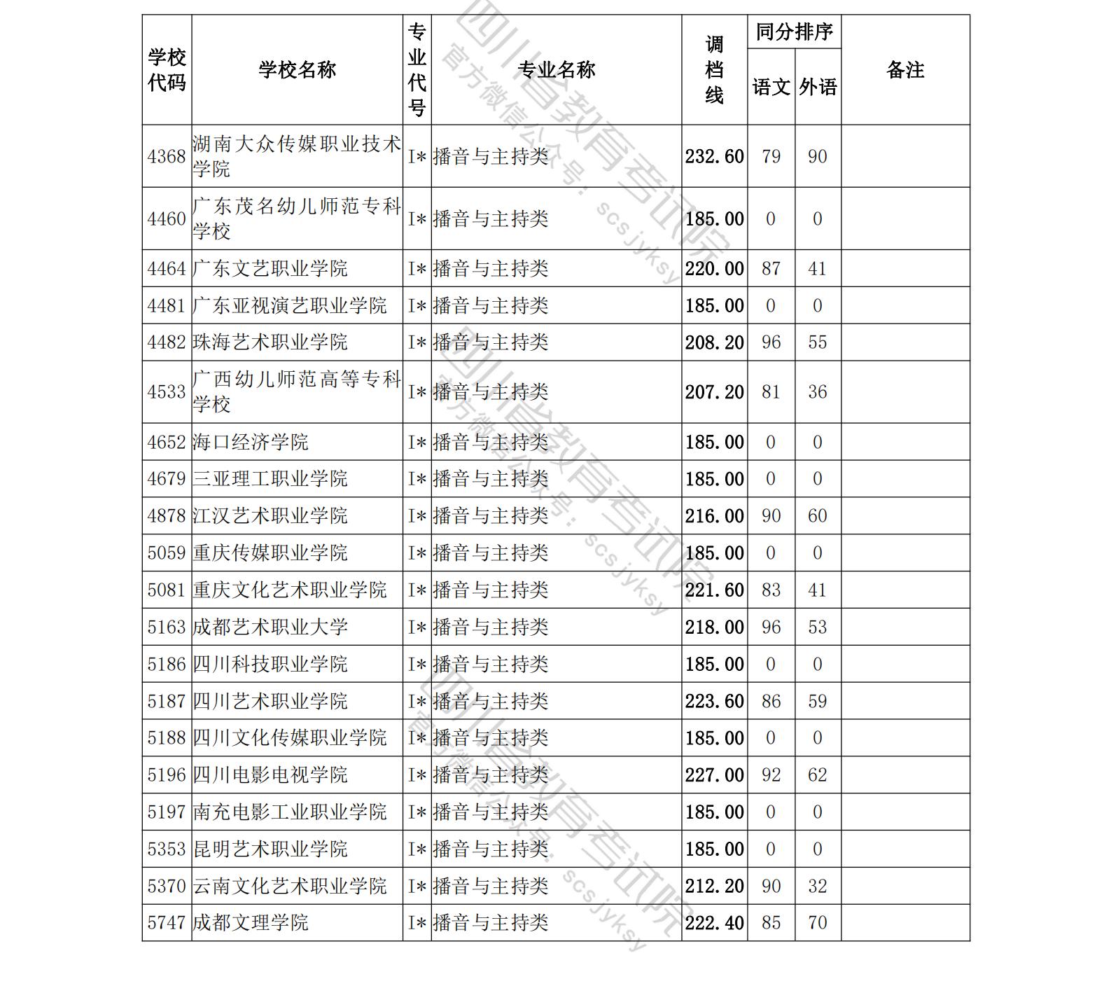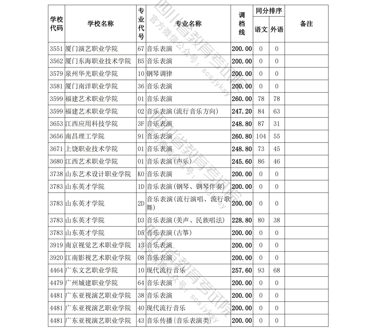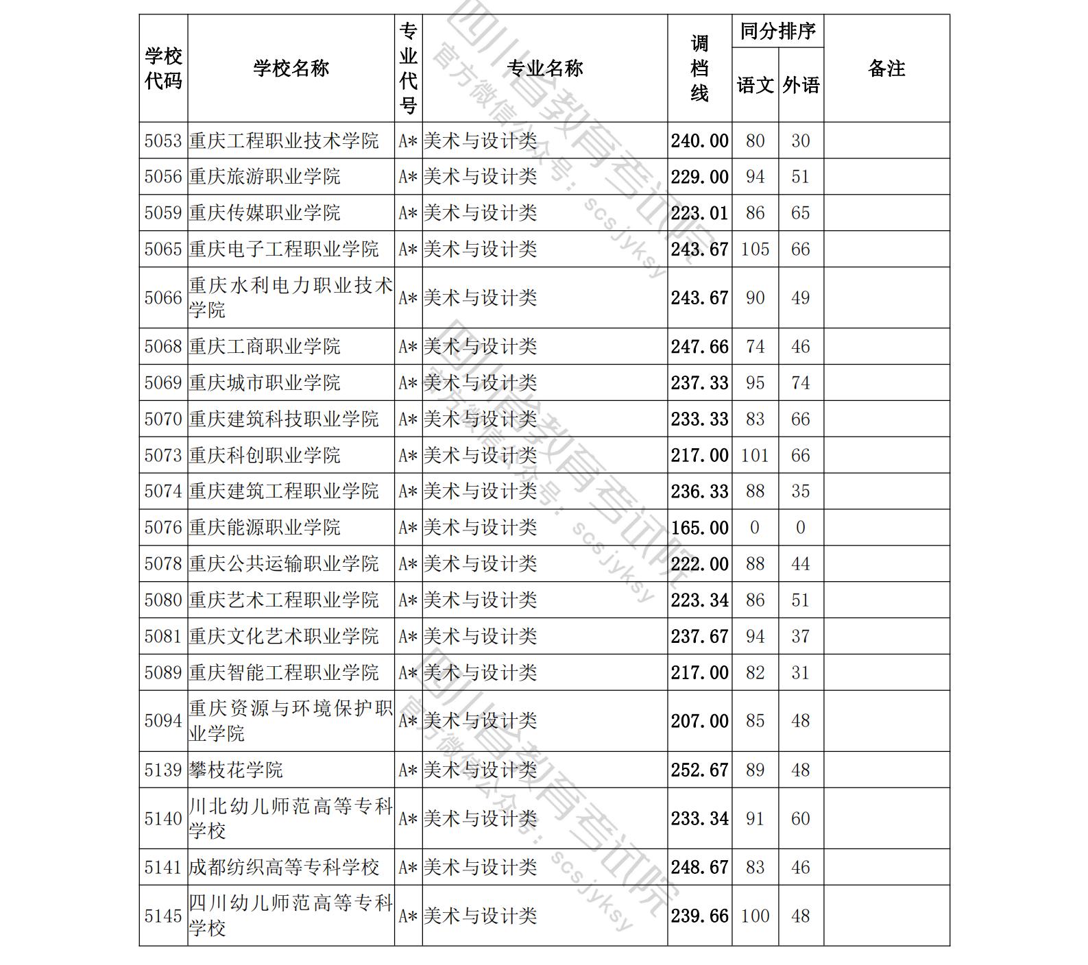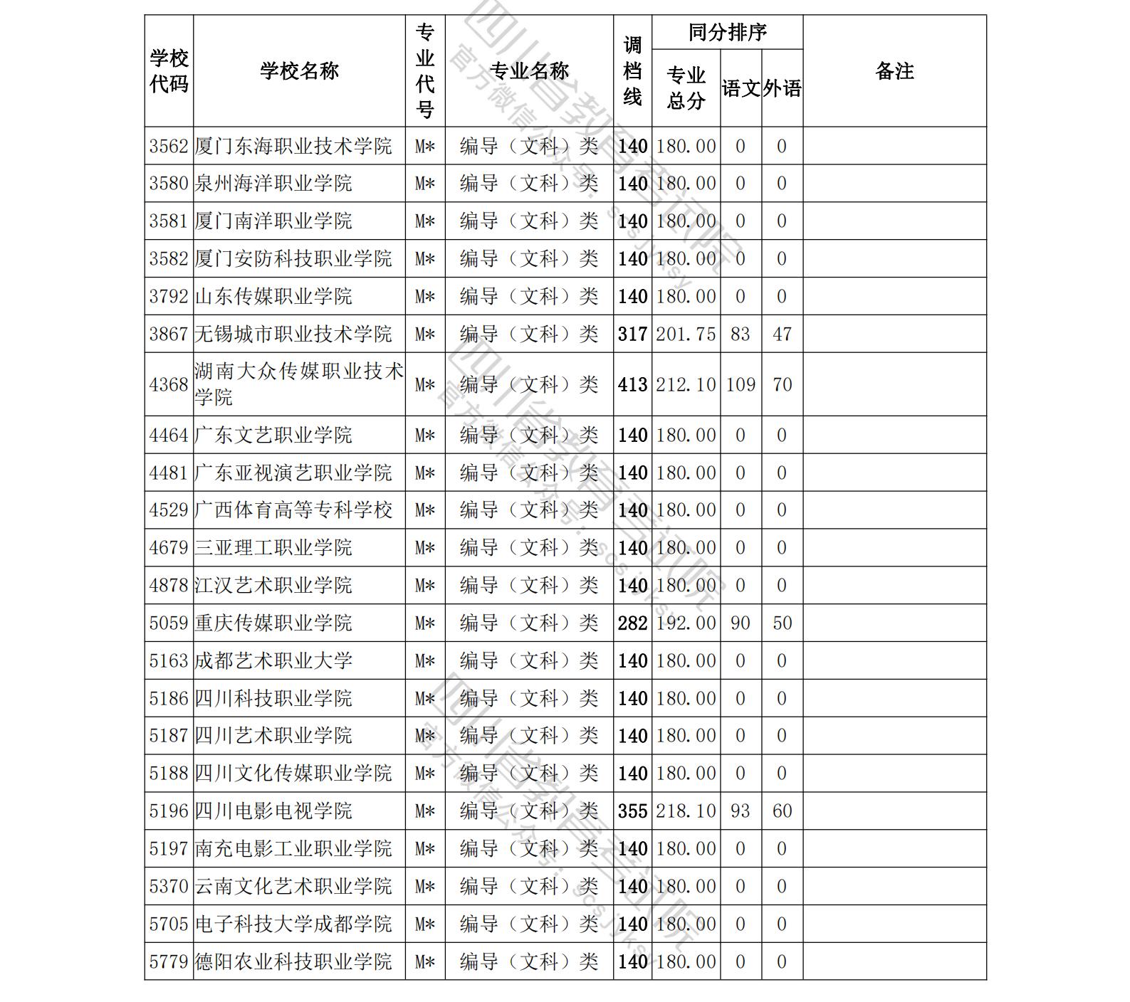 四川省2023年普通高等学校艺术体育类专业招生专科批调档线