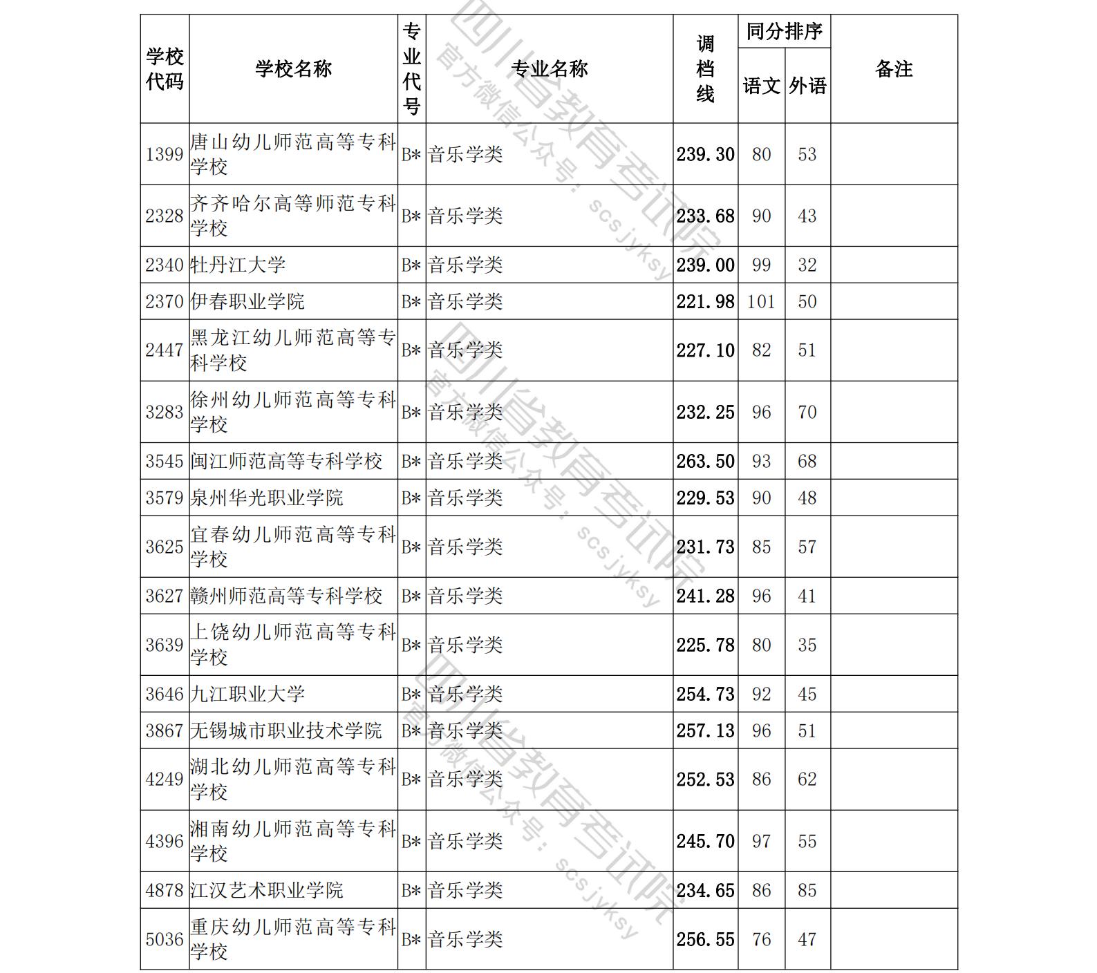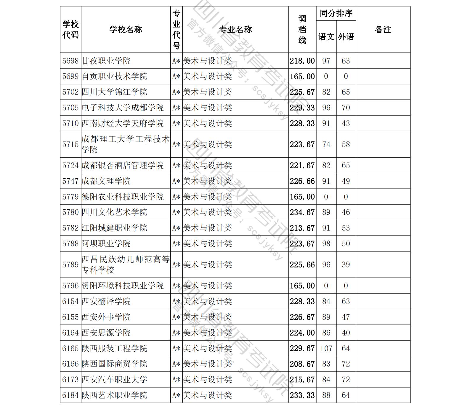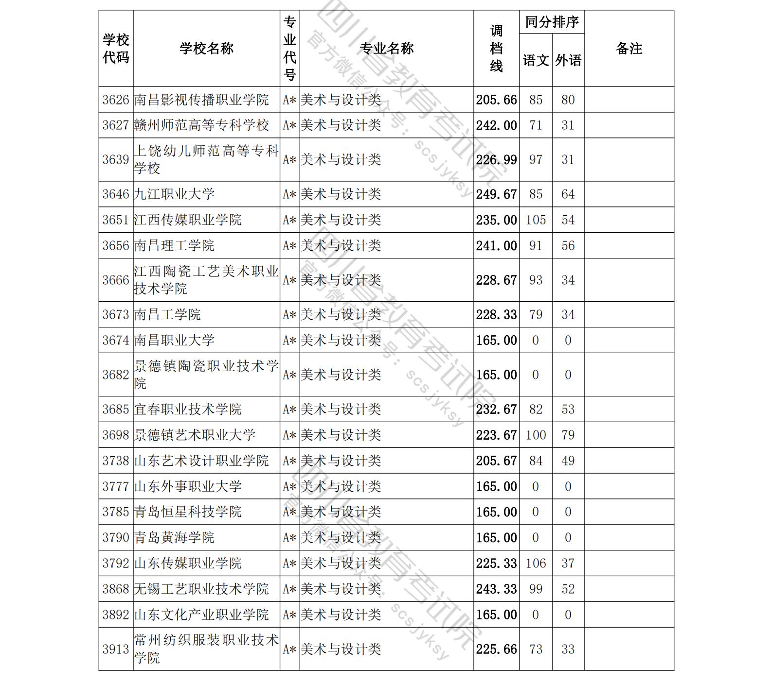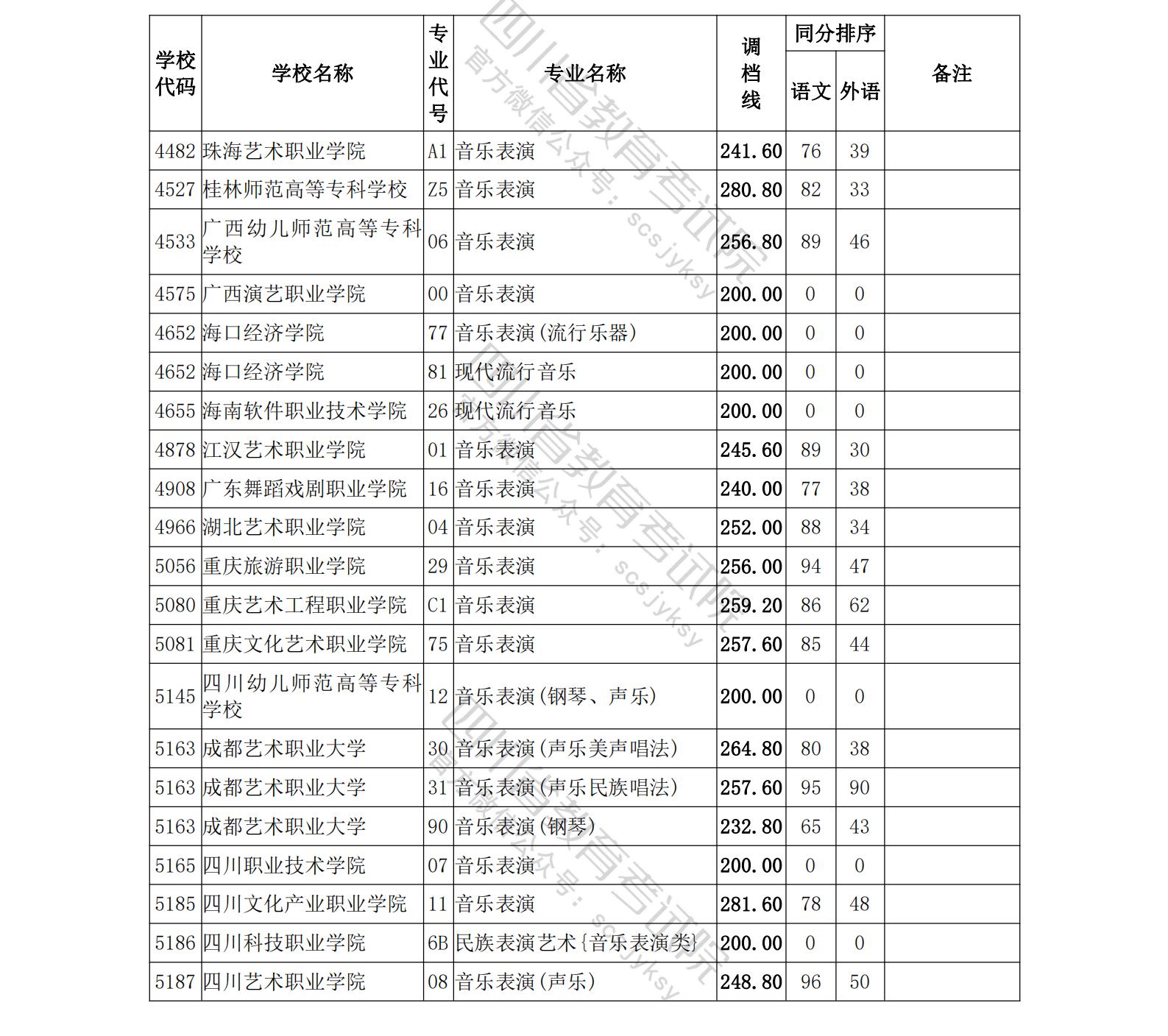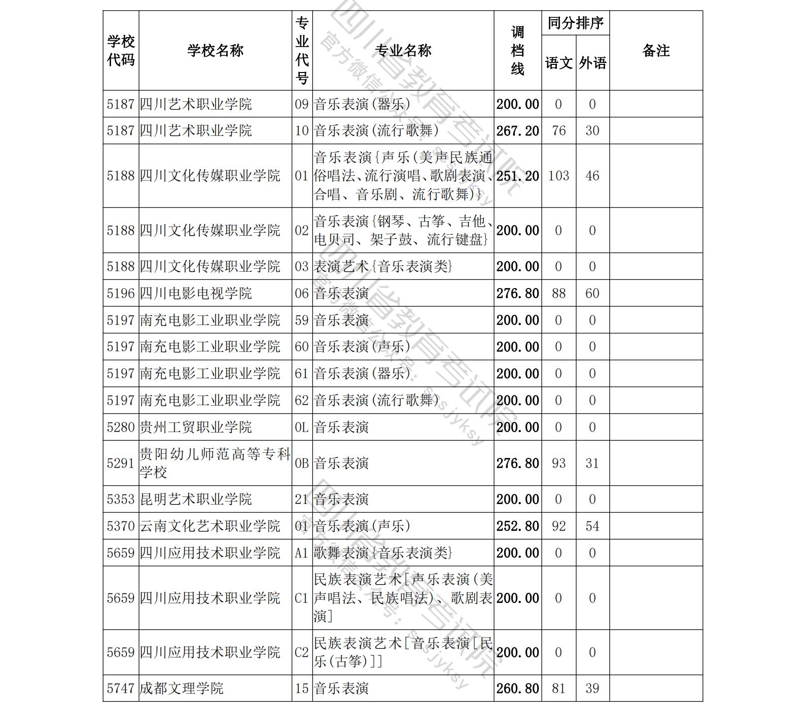 四川省2023年普通高等学校艺术体育类专业招生专科批调档线