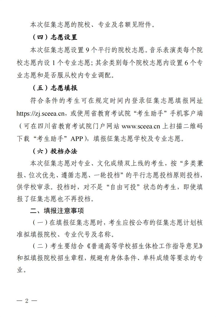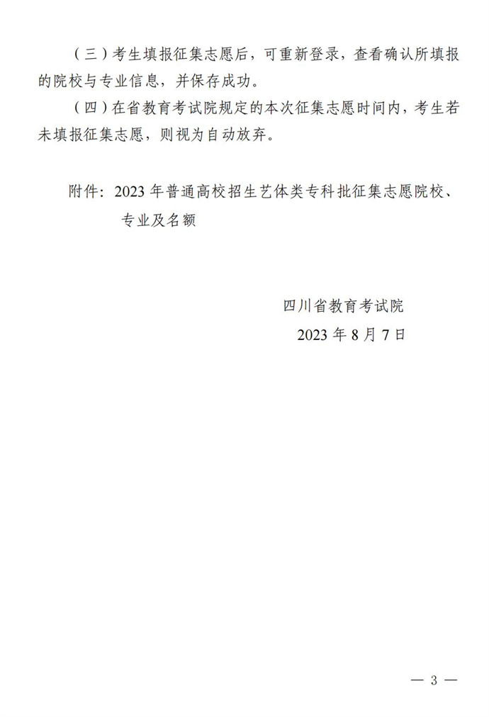 关于四川省2023年普通高校招生艺术体育类专科批征集志愿的通知