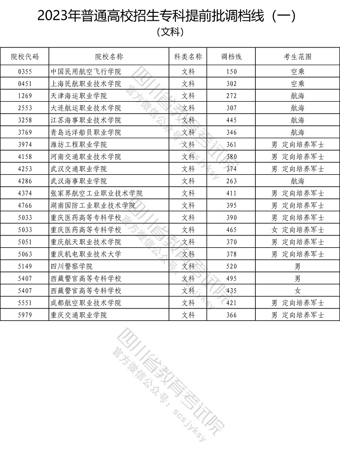 重磅!2023年普通高校在川招生专科提前批院校调档线(一)出炉!