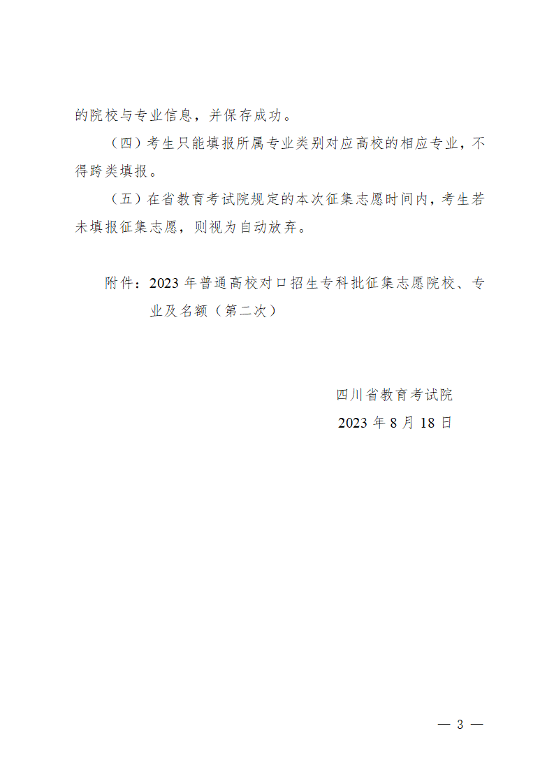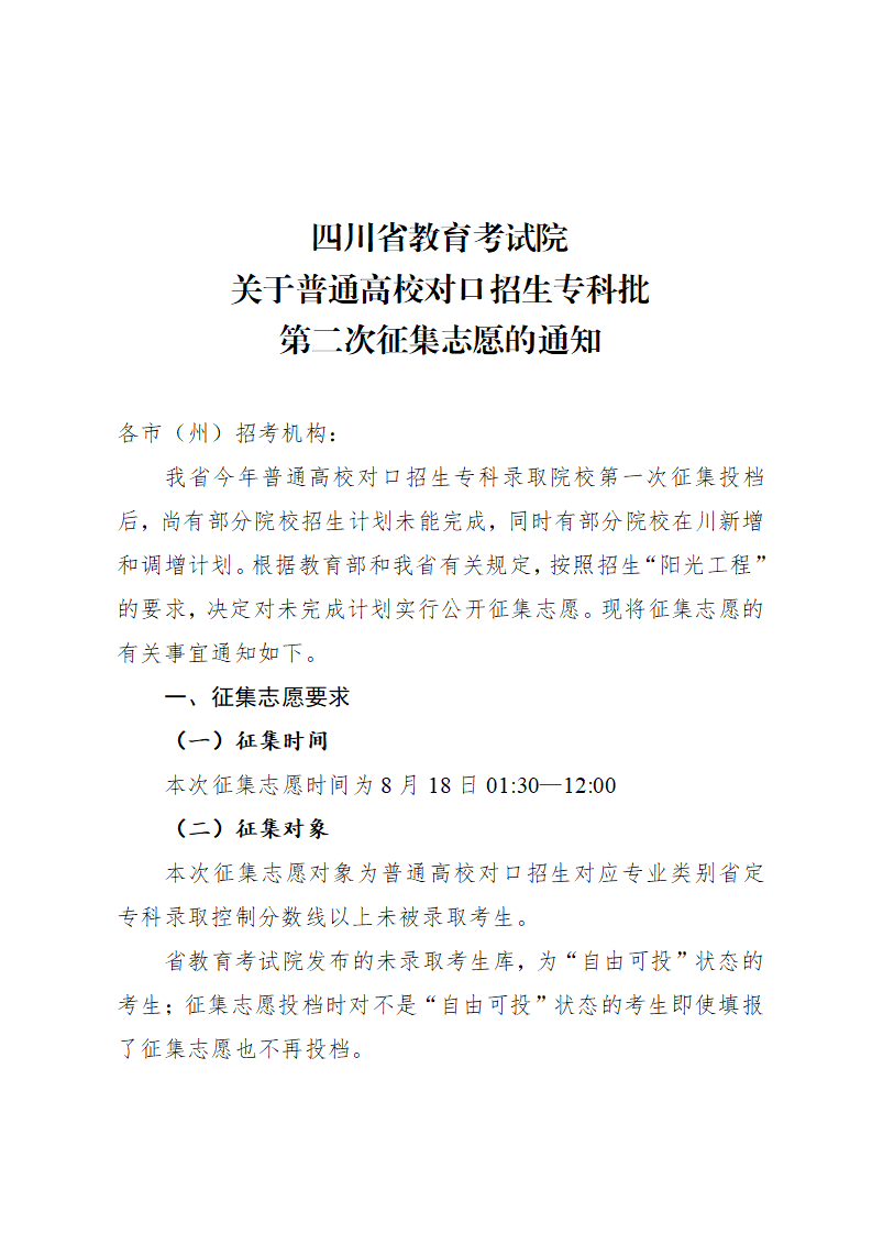 关于普通高校对口招生专科批第二次征集志愿的通知