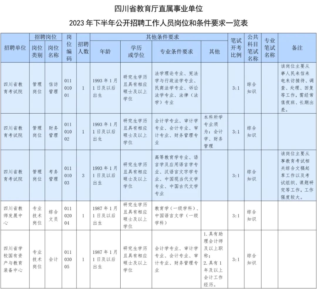本公告未尽事宜,请以四川省教育厅关于直属事业单位2023年下半年公开招聘工作人员公告为准。