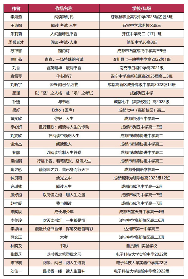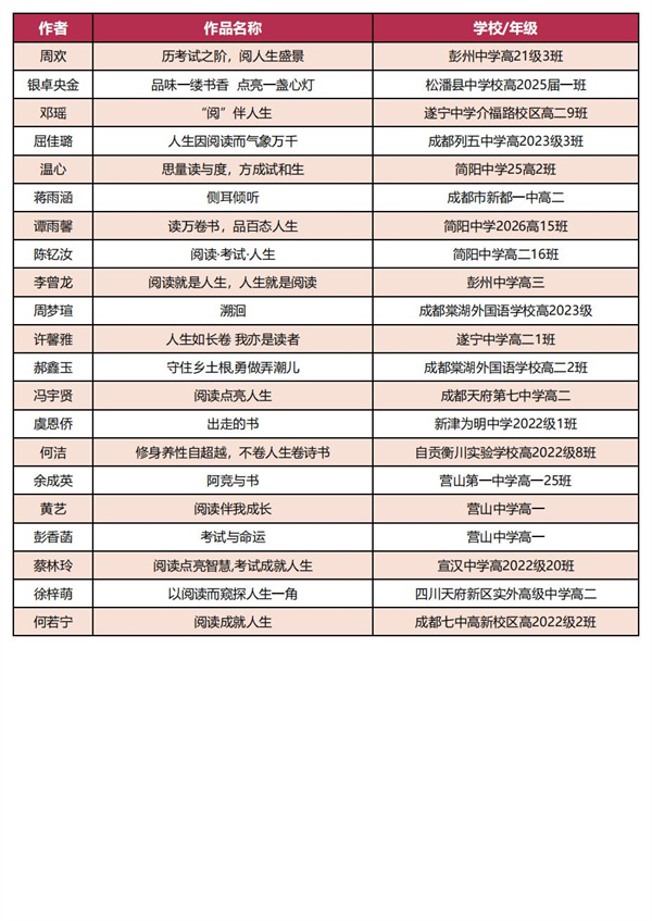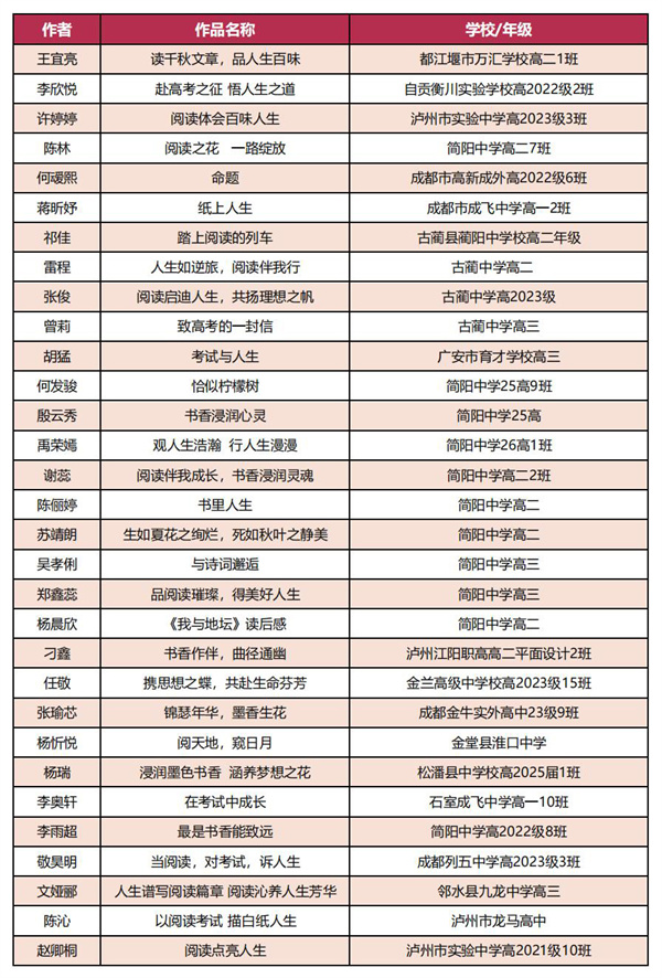 公布!四川首届“阅读·考试·人生”主题征文公益活动评选结果出炉!