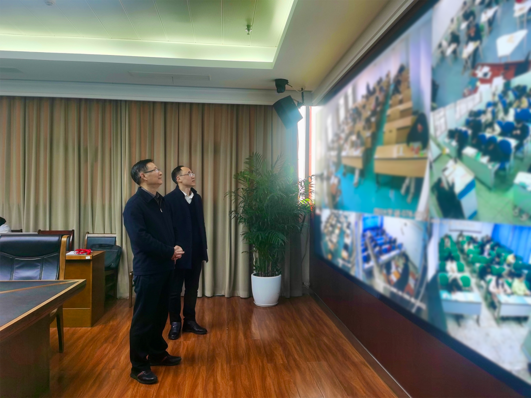 全力把好试题试卷安全关,严格落实试卷印制、领取、运送、保管、分发、回收等各环节安全保密措施,严格执行试卷押运实时定位和全程视频监控要求,保障试题试卷绝对安全。严把作弊防范关,筑牢“五位一体”防手机作弊体系,“智能安检门”全配备、无线电信号(含5G)屏蔽全覆盖、手机集中管理全落实。研考期间,在国家教育考试省市两级指挥中心,网信、保密、经信、公安、卫健、市场监管等联席会议成员单位联合值班,实时查看考点考场情况,统筹协调各地组考工作,第一时间处理突发事件,共同护航平安研考。
