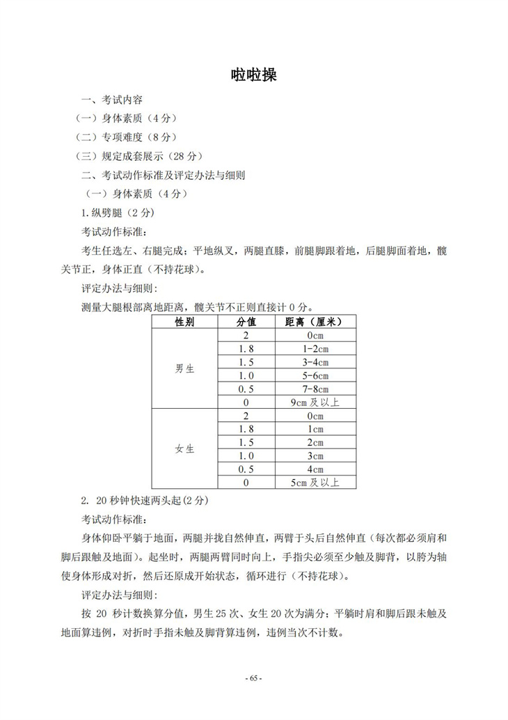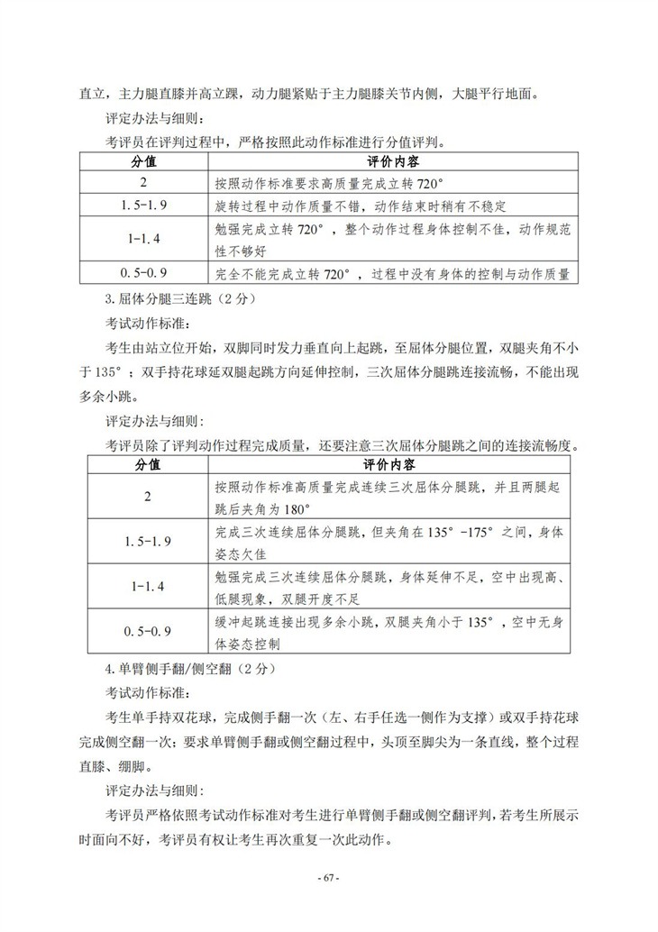 四川省普通高校招生体育类专业考试评分标准与办法(试行)