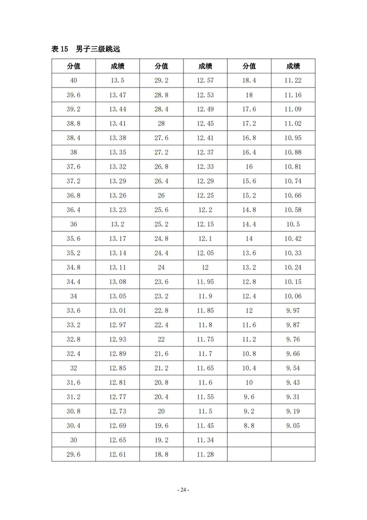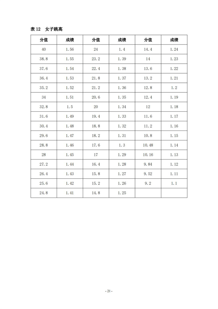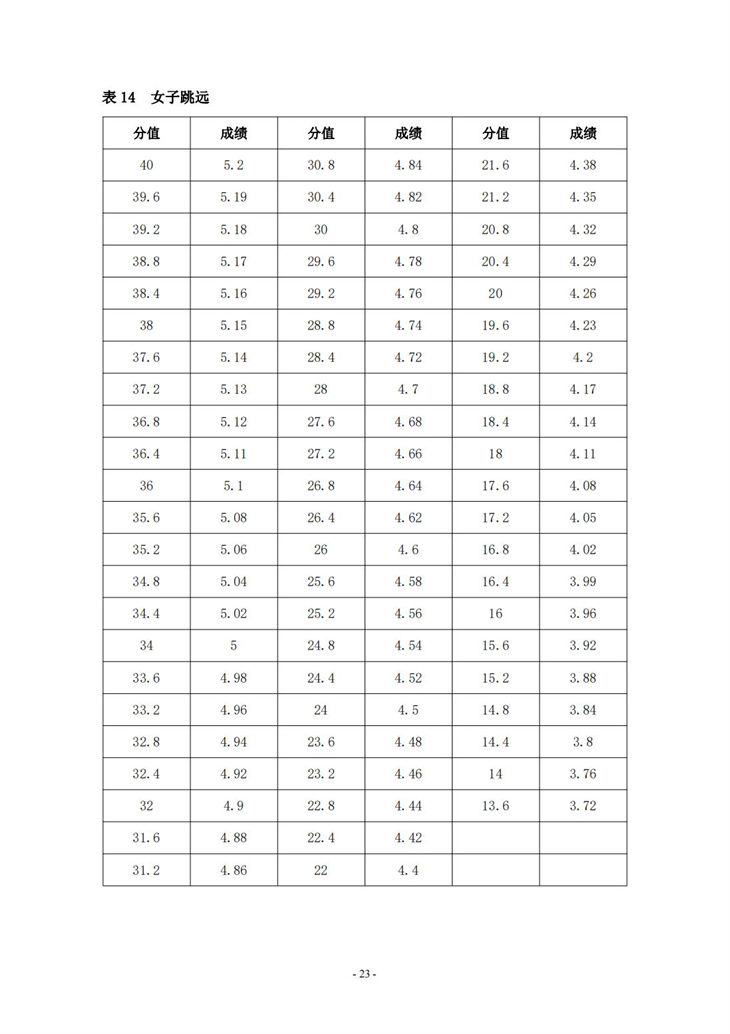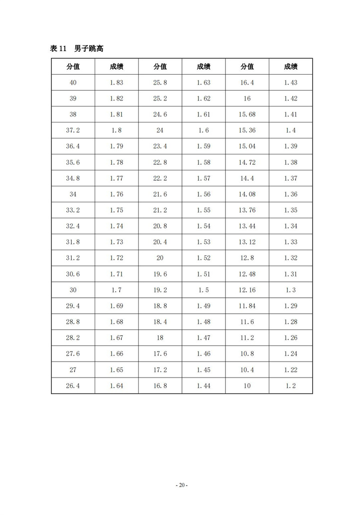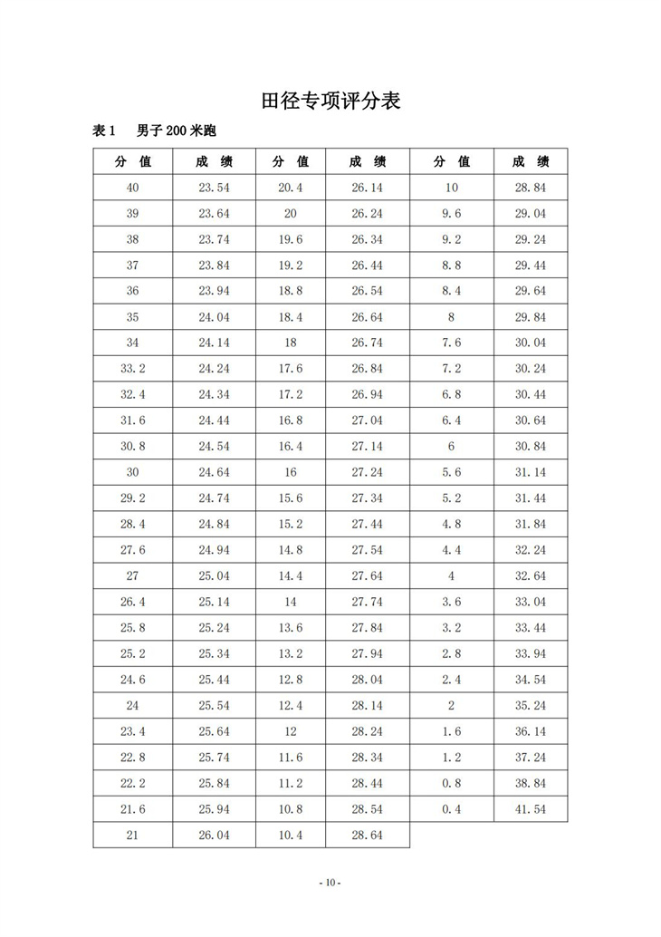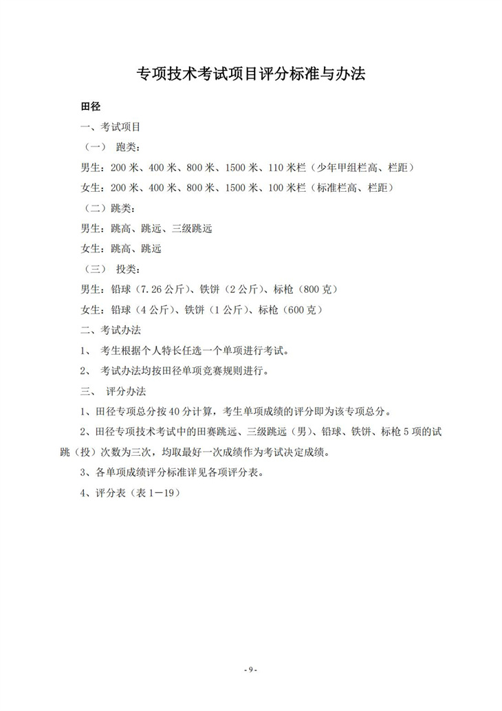 四川省普通高校招生体育类专业考试评分标准与办法(试行)