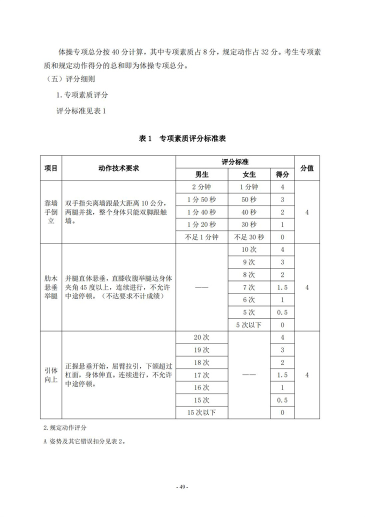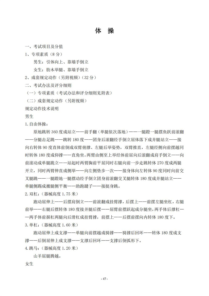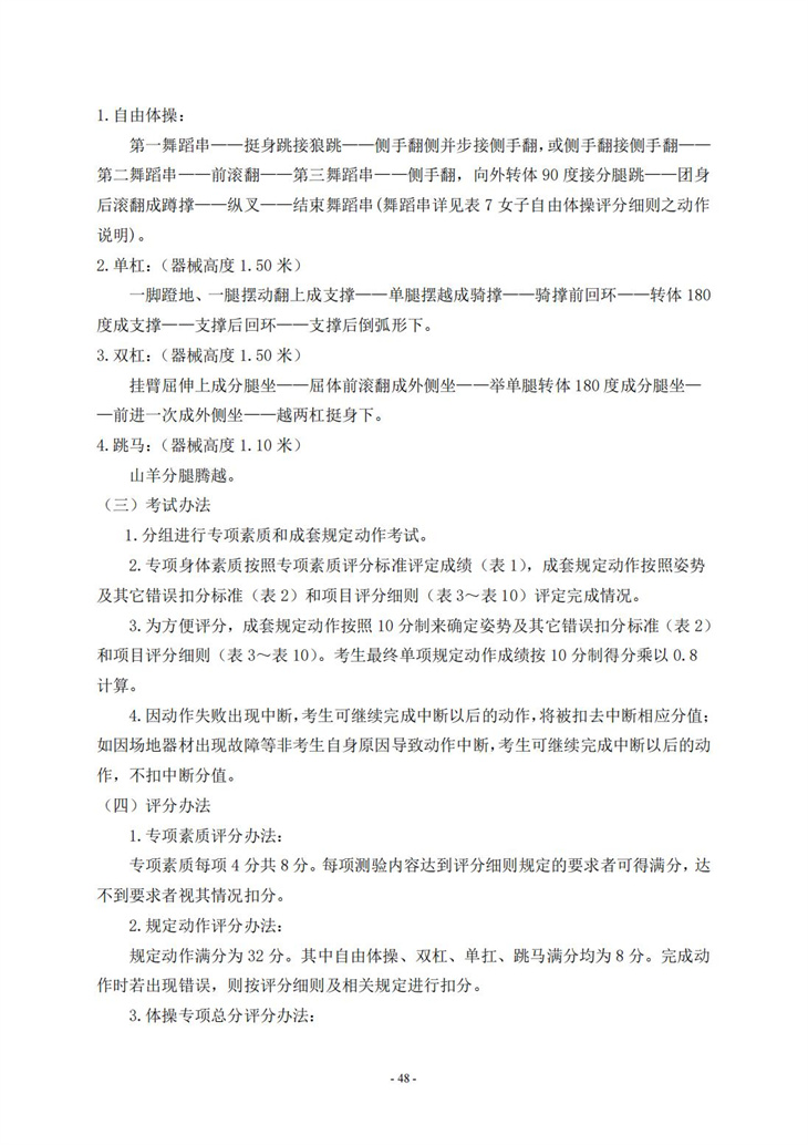 四川省普通高校招生体育类专业考试评分标准与办法(试行)