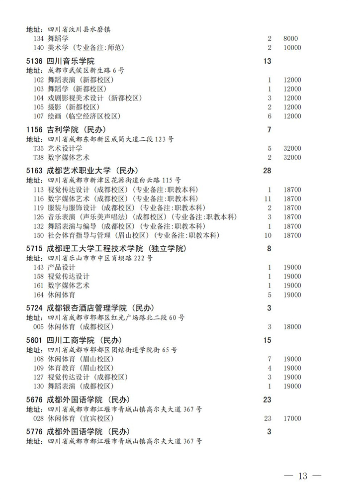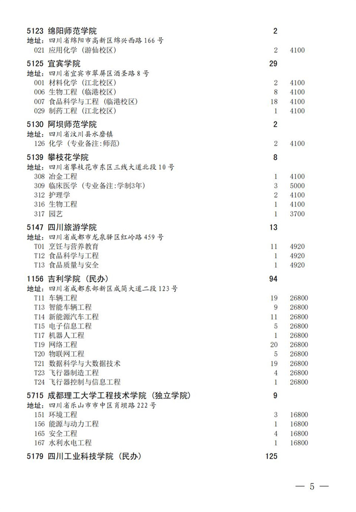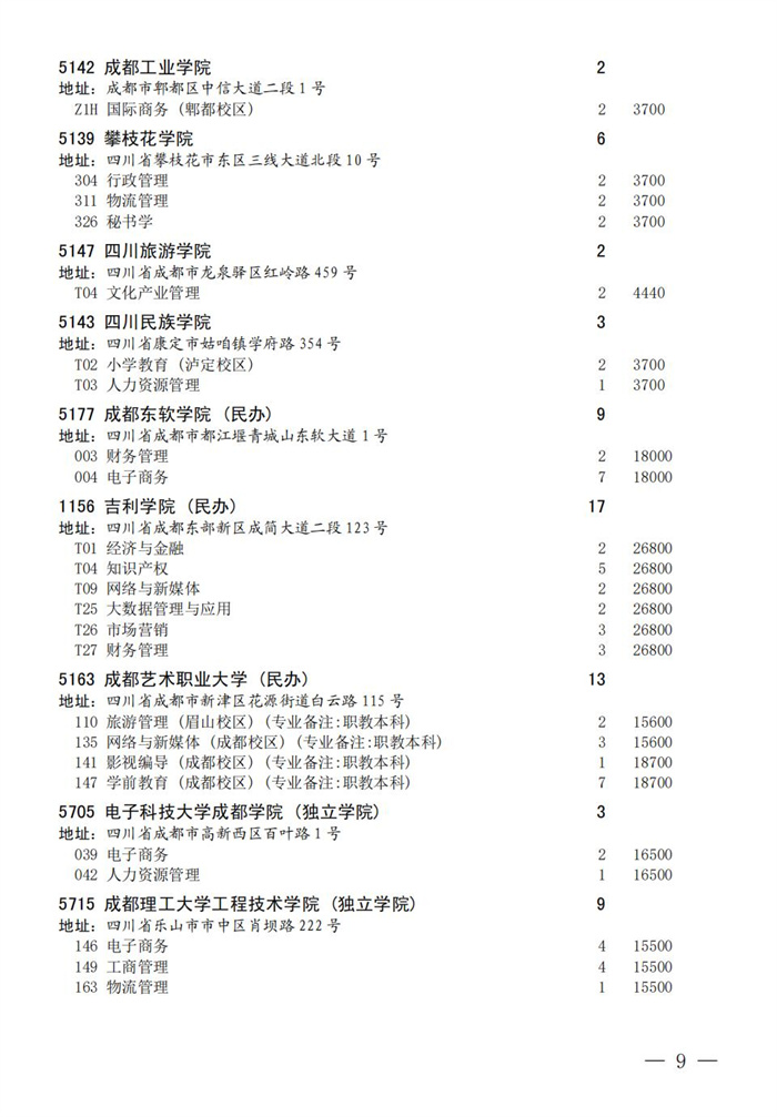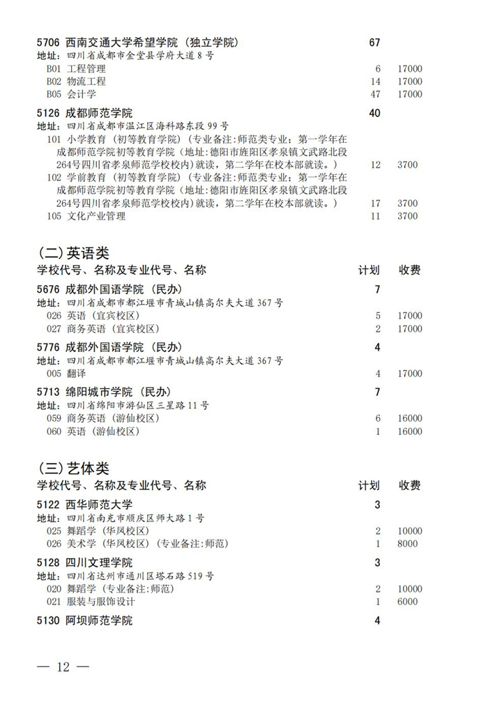 四川省2025年普通高校专升本招生专业及计划