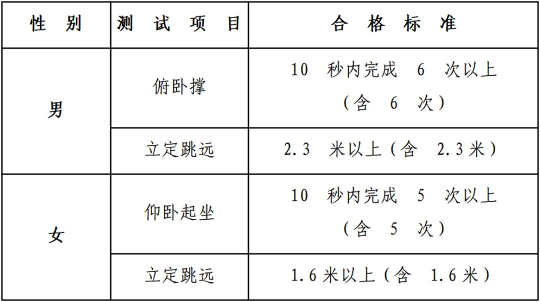 体能测试项目及合格标准