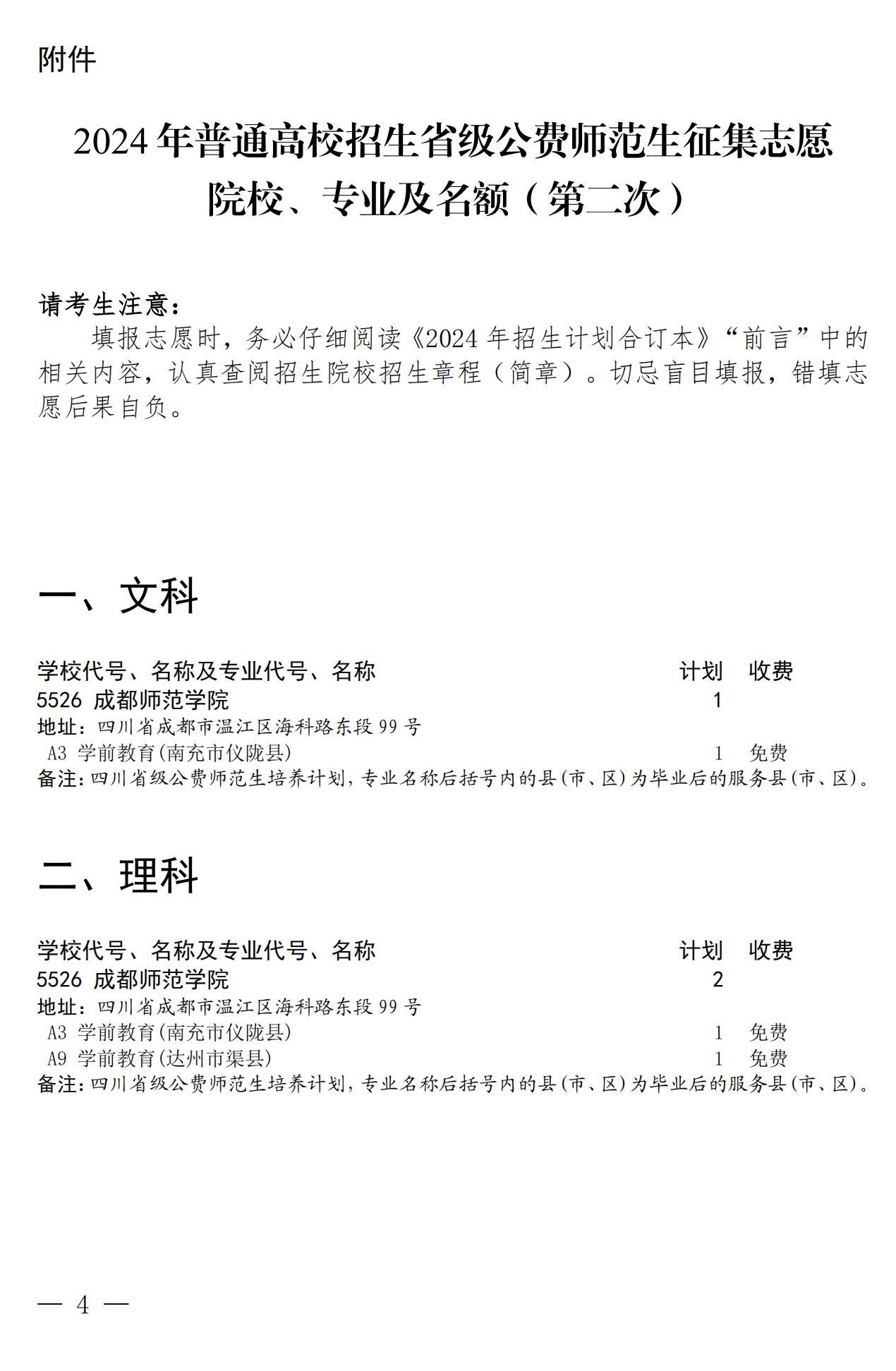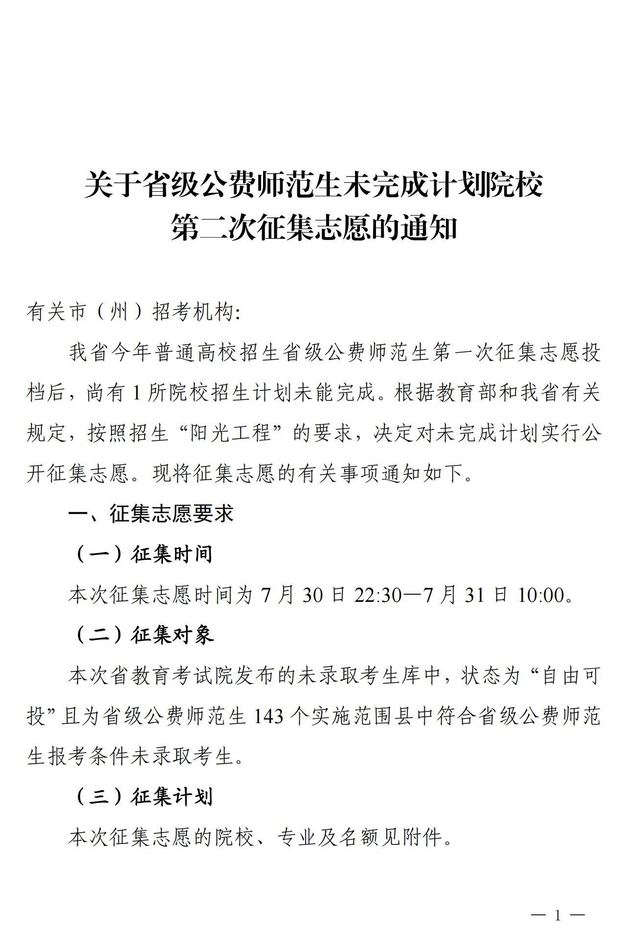 关于省级公费师范生未完成计划院校第二次征集志愿的通知