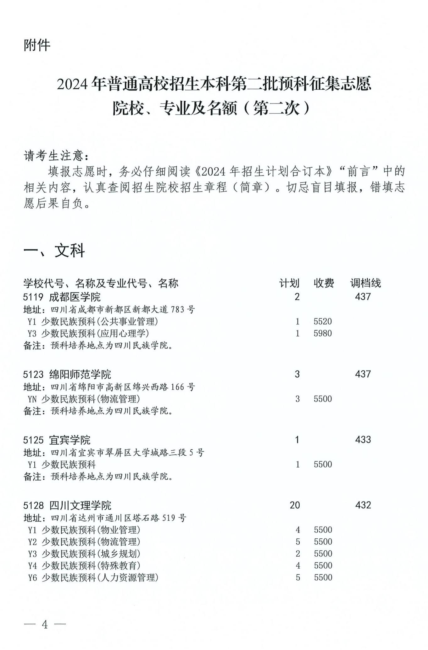 关于本科第二批预科第二次征集志愿的通知