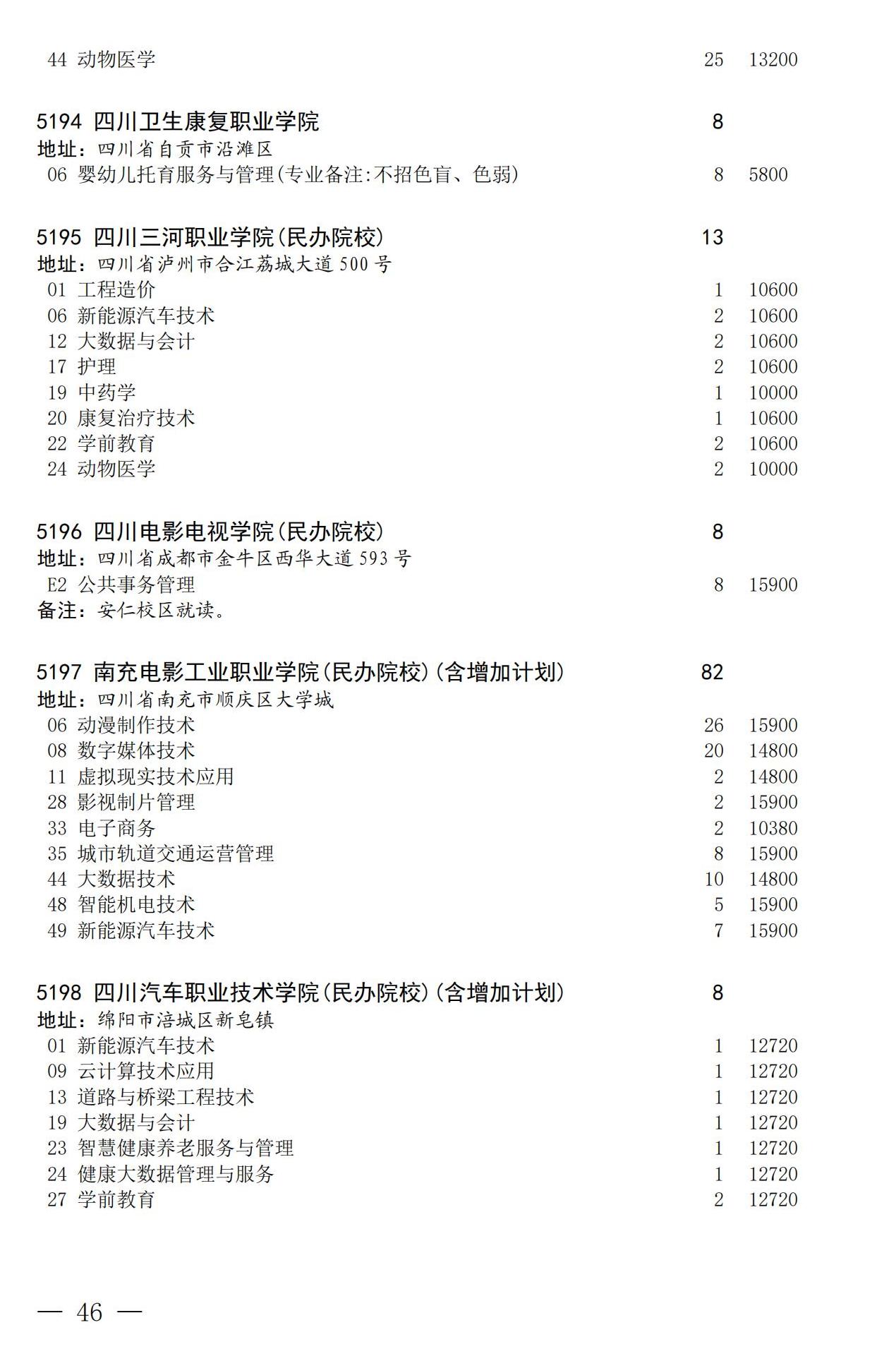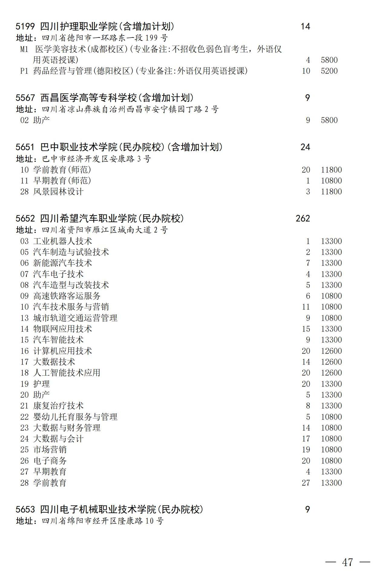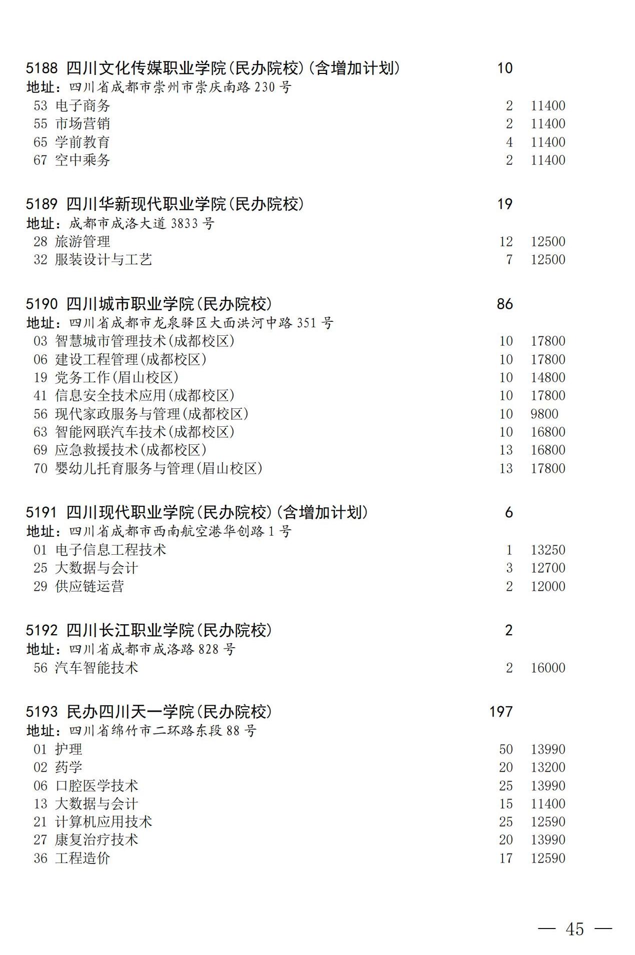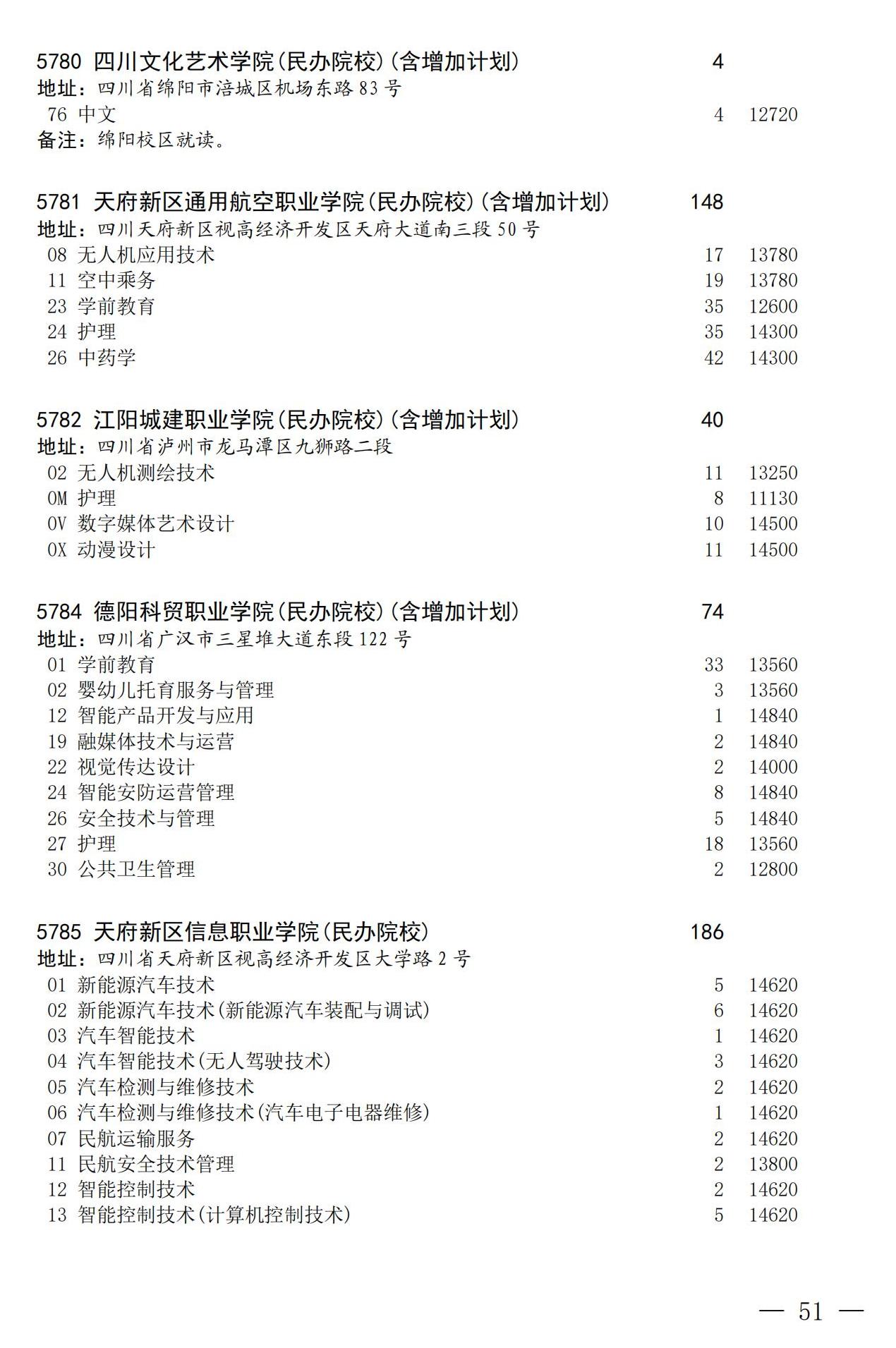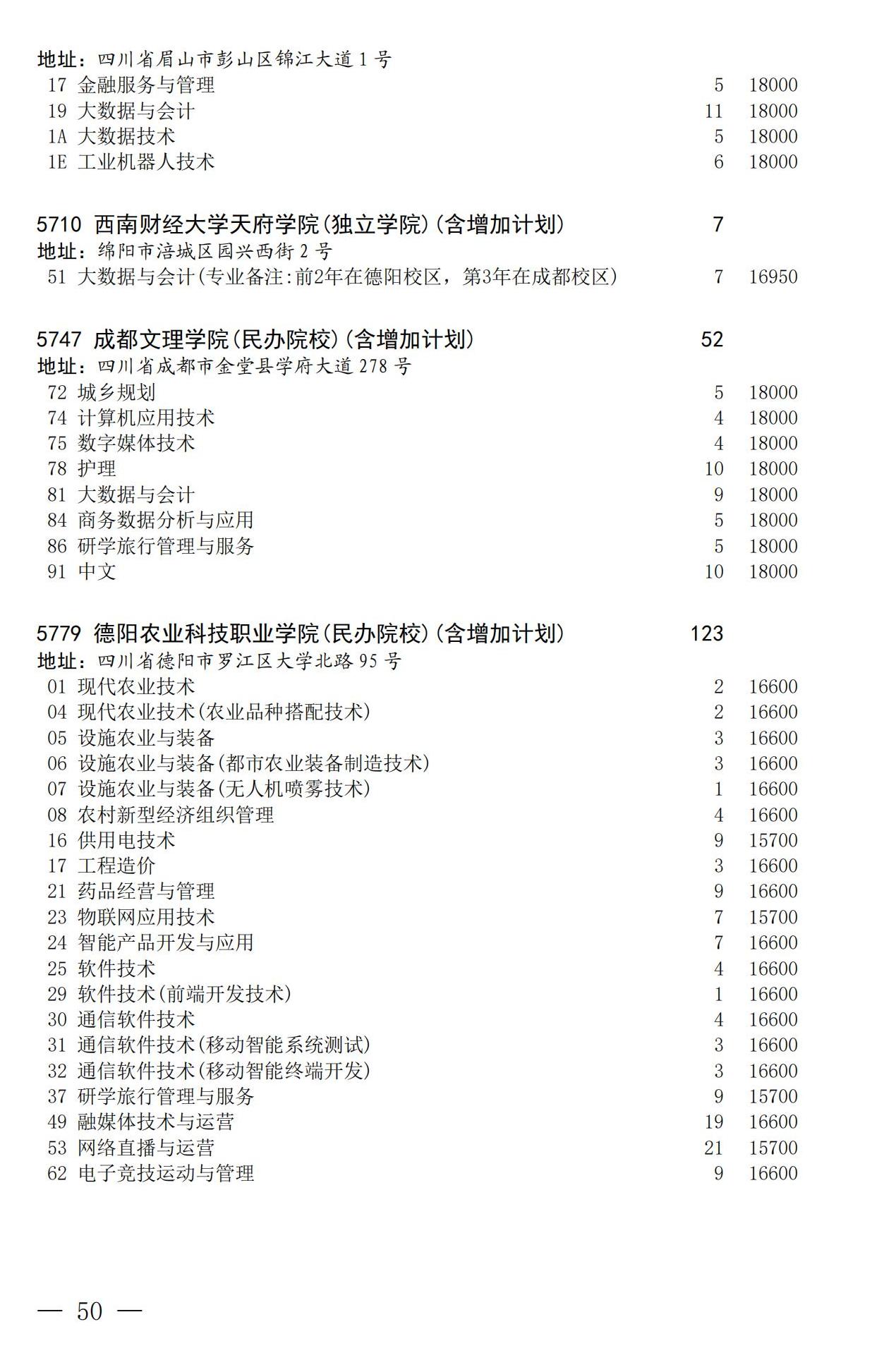 四川省2025年普通高校专升本招生专业及计划