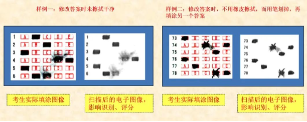 ▶若未正确修改,会影响计算机识别、评分,如下图所示: